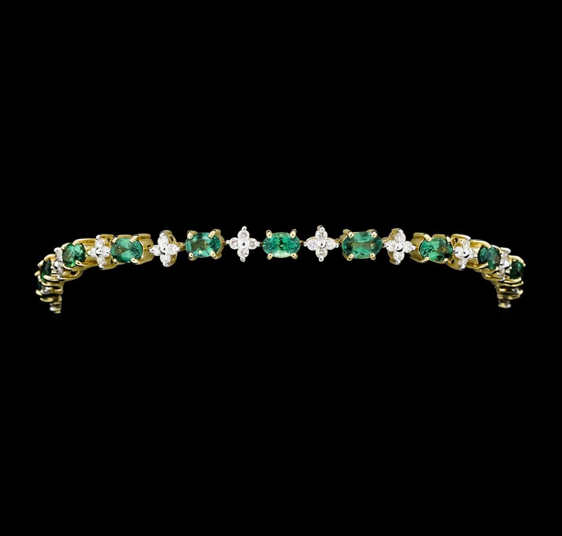 One electronically tested 14KT yellow gold lady's combination cast & assembled fashion bracelet with a tongue clasp with double foldover safeties with a bright polish finish. The featured lady's bracelet measures approximately 7.25 inches in length. Identified with markings of '14K'. Condition is new, good workmanship. Containing: Eighteen prong set oval modified mixed cut natural alexandrites, measuring 5.05 x 3.40 x 2.21mm, (depth est.) approximate total weight of 5.43ct., clarity is eye clean, medium, slightly grayish, slightly yellowish green color, (GIA slyG 5/2) to medium light, slightly grayish, purple red, (GIA PR 4/2), cut is good. Transmitting light with no distortion, transparent. Colored gemstones are presumed to have been subjected to commonly used enhancement processes. Graded in the setting. Seventy-Two prong set round brilliant cut diamonds, measuring 1.60 - 1.50 x 0.96mm (depth est.) approximate total weight of 72 Stones = 1.00ct. Graded in the setting. Color G - H Clarity VS-2 to SI-1 Cut Very Good. Total Weight of Colored Stones 5.43ct.. Total Weight of Diamonds 1.00ct.. Total Weight of Bracelet 10.10gm GAS Appraised at $25595.00. GAS Appraised at $25,595.00.