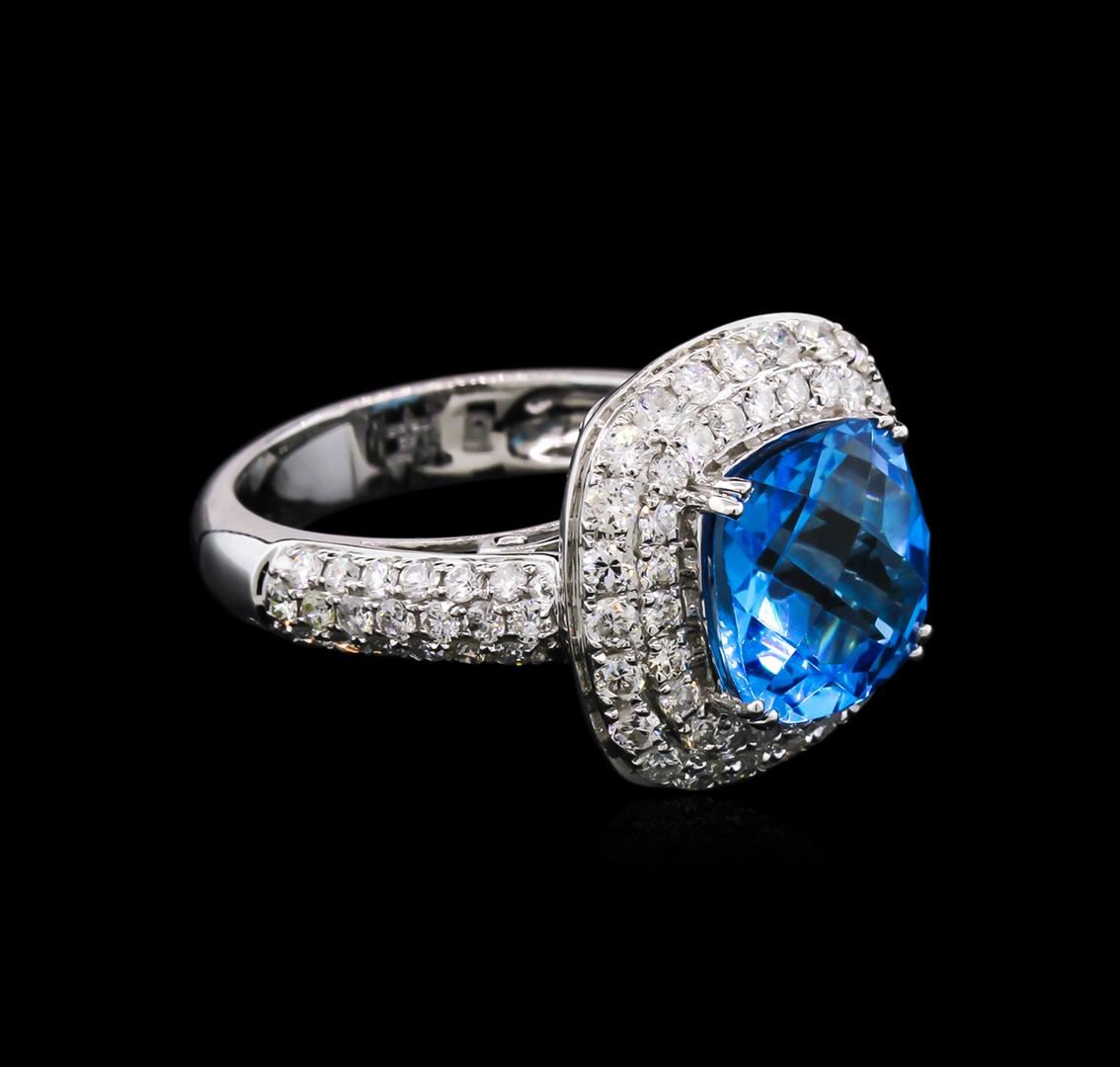 One ring featuring: 14KT white gold weighing 6.86 grams containing one blue topaz with a total weight of 5.46ct and diamonds with a total weight of 1.82ct.