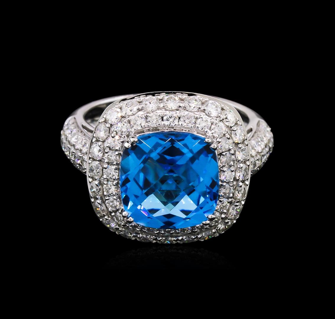 One ring featuring: 14KT white gold weighing 6.86 grams containing one blue topaz with a total weight of 5.46ct and diamonds with a total weight of 1.82ct.