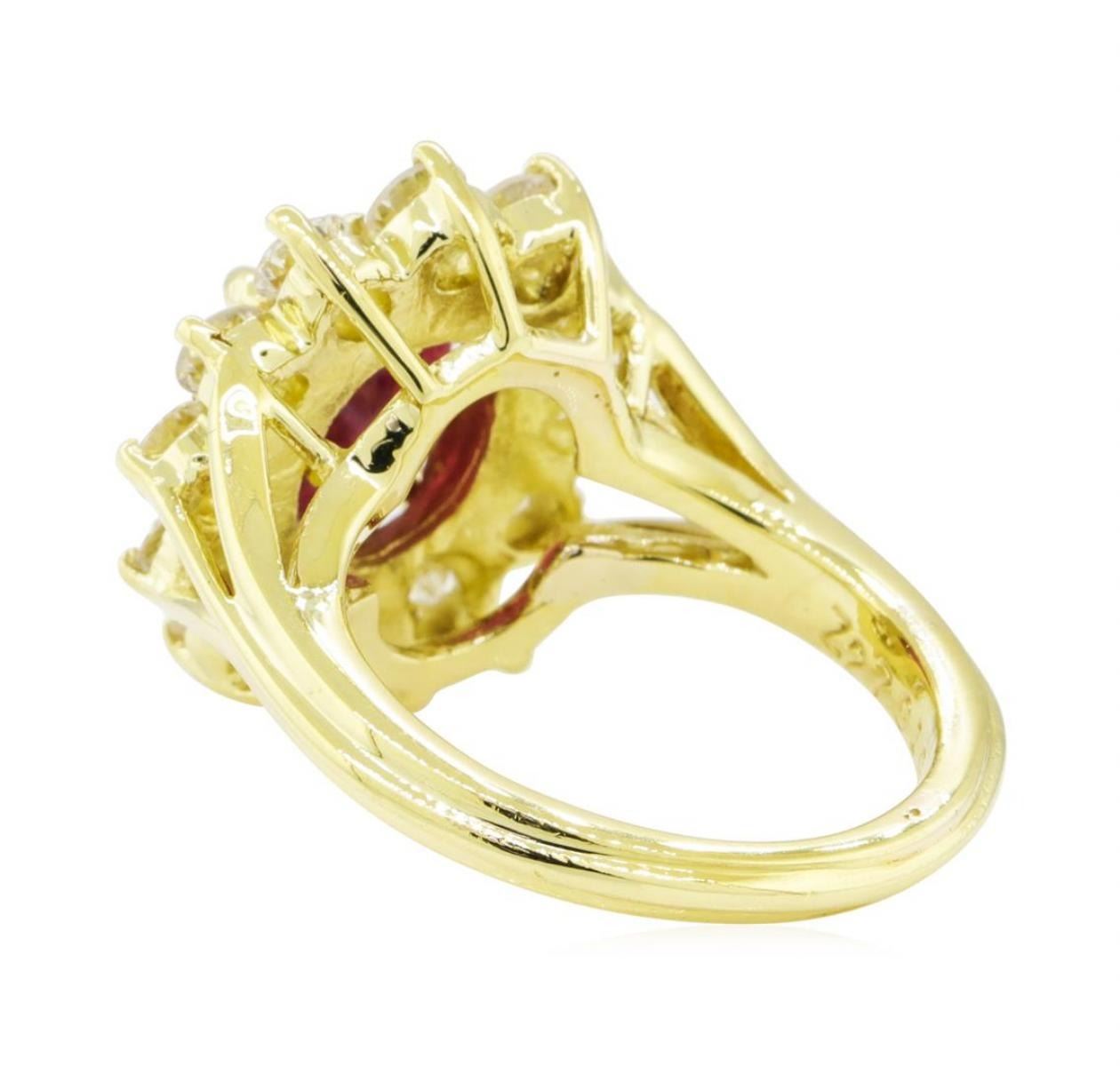 One electronically tested 18KT yellow gold lady's cast fashion ring with a basket halo with a bright polish finish. The featured lady's ring has a shank measuring 2.20 millimeters wide. Identified with markings of '18K'. Condition is new, good workmanship