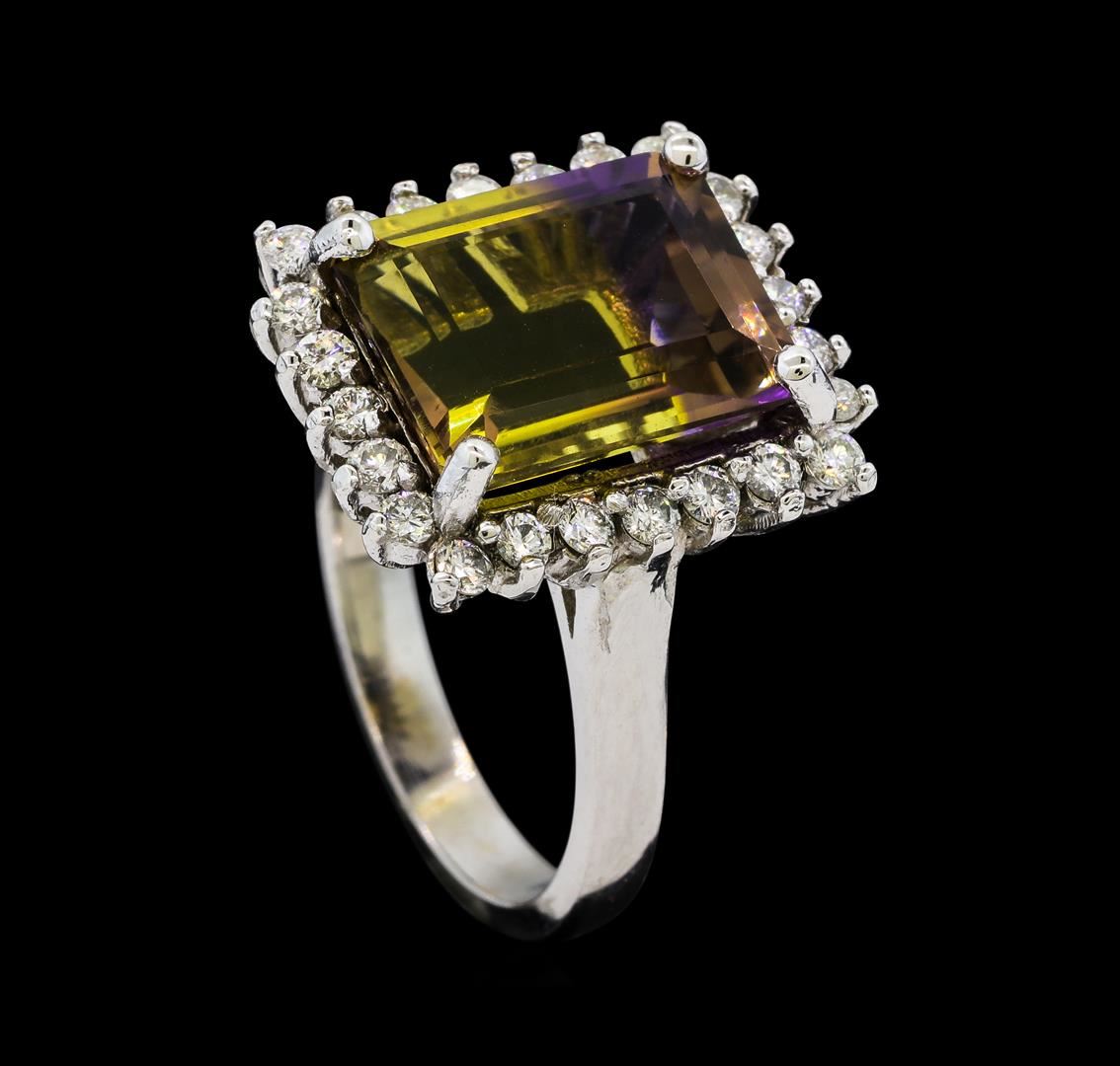 One Ametrine Quartz and Diamond Ring including: 14KT White Gold weighing a total of 6.03 grams, Ametrine Quartz weighing a total of 5.54ct and 24 Diamonds weighing a total of 0.58ctw.
