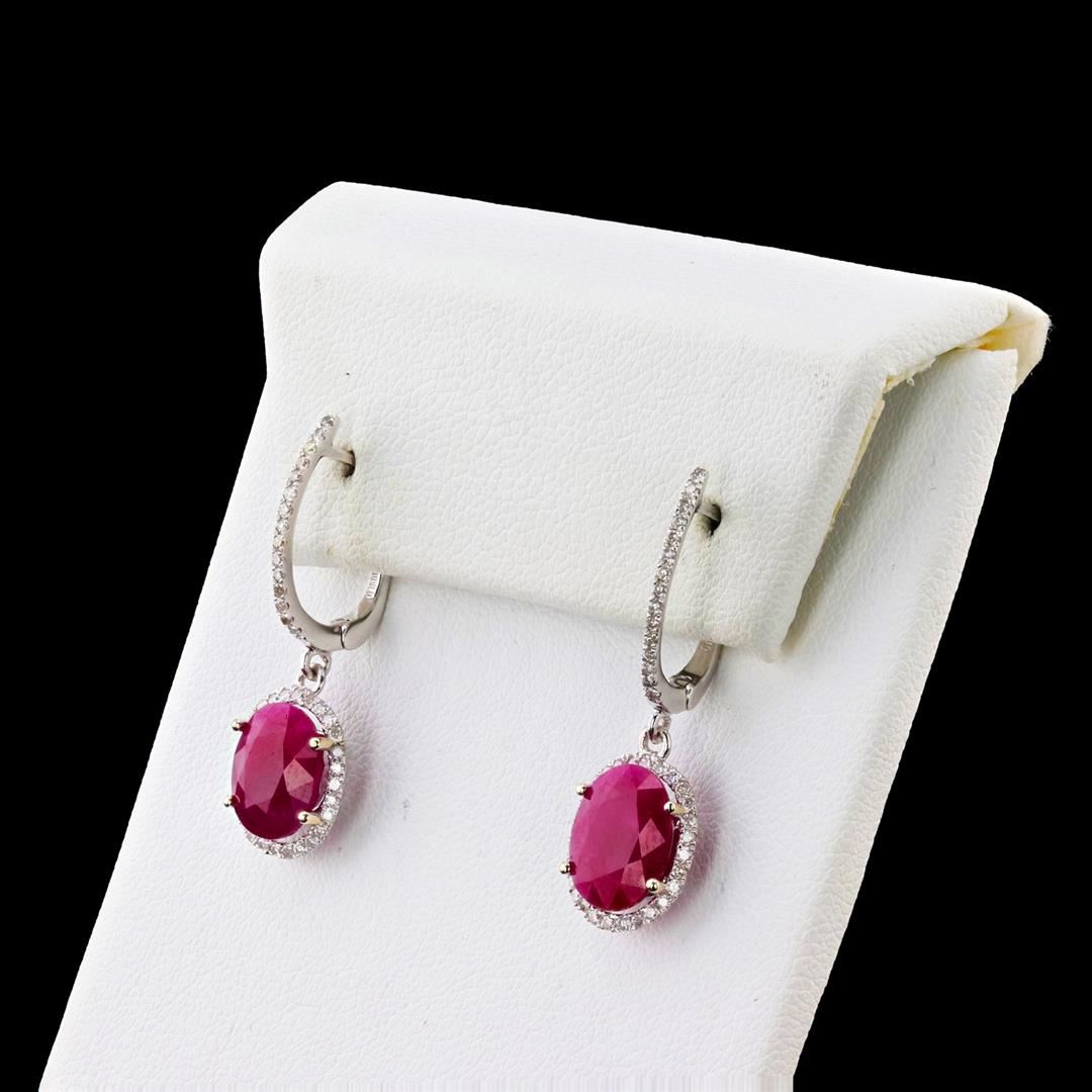 5.61ctw Ruby and 0.45ctw Diamond Dangle Earrings. Please see Photos and Description for all available information. These earrings are a unique combination of two of the most precious gemstones on Earth - rubies and diamonds. The design of the earrings is inspired by the iconic, timeless, and elegant look of a woman's classic hoop earrings. The earrings are crafted in a perfect combination of 14K white gold and diamonds and feature a total of 2 oval mixed cut rubies weighing 5.61 carats and 86 round brilliant cut diamonds weighing 0.45 carats.