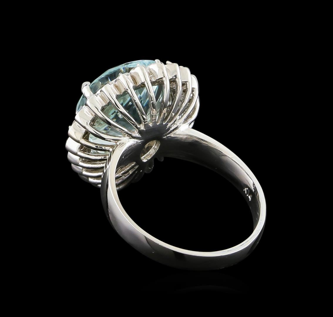 One Ring featuring: 14KT White Gold weighing 6.68 grams containing one Aquamarine center stone with a total weight of 5.65ct and Diamonds with a total weight of 0.48ct.