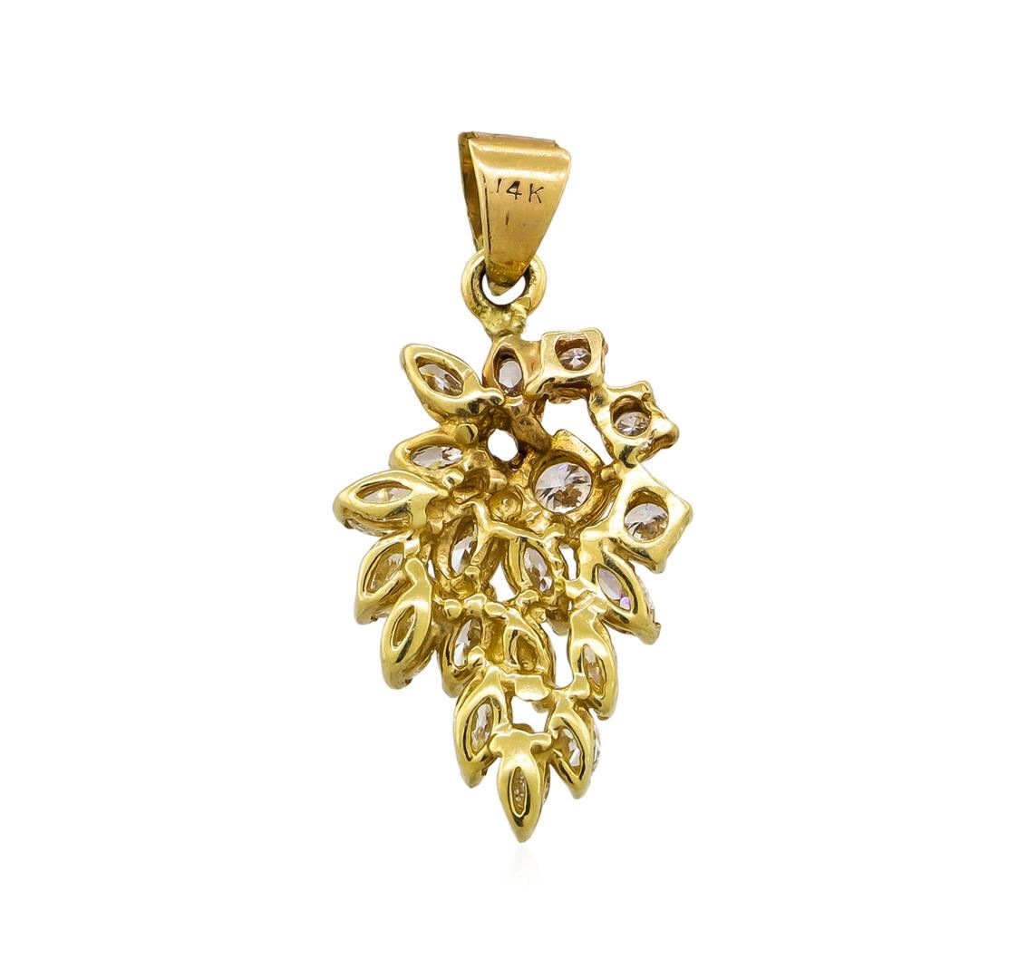 One set electronically tested 14KT yellow gold lady's combination cast & assembled fashion pendant and earrings with Omega clip backs with a bright polish finish. Identified with markings of "14K". Condition is used, good workmanship. Containing: Twelve prong set round brilliant cut diamonds, measuring 4.00 - 2.95 x 2.09mm (depth est.) approximate total weight of 12 Stones = 1.80ct. Graded in the setting. Clarity: SI-1 to SI-2. Color: I - J. Cut Good Forty-Five prong set marquise shaped cut diamonds, measuring 4.50 x 2.35 x 1.48mm (depth est.) approximate total weight of 45 Stones = 4.00ct. Graded in the setting. Clarity: SI-1 to SI-2. Color: I - K. Cut Good. Total Weight of Diamonds 5.80ct. Total Weight of Pendant And Earrings 13.40gm. GAS Appraised at $14,610.00.