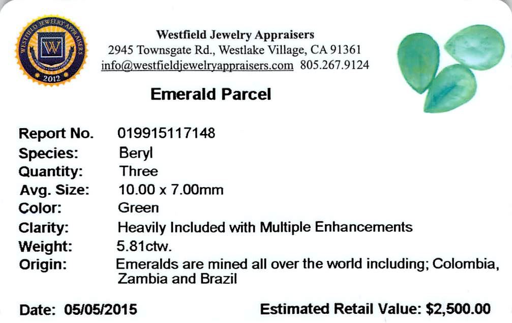One 5.81 ctw Pear Mixed Emerald Parcel.