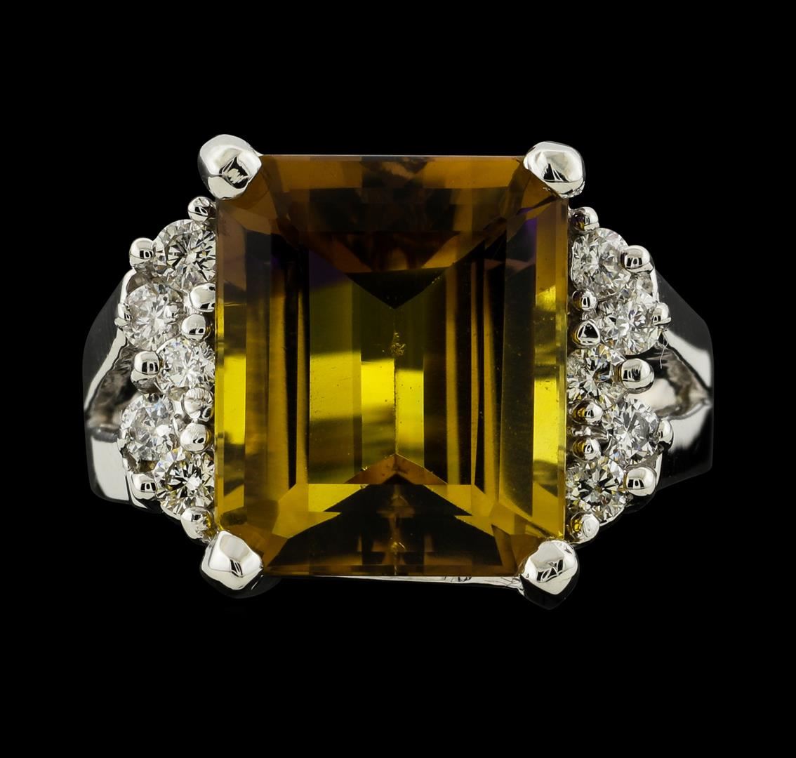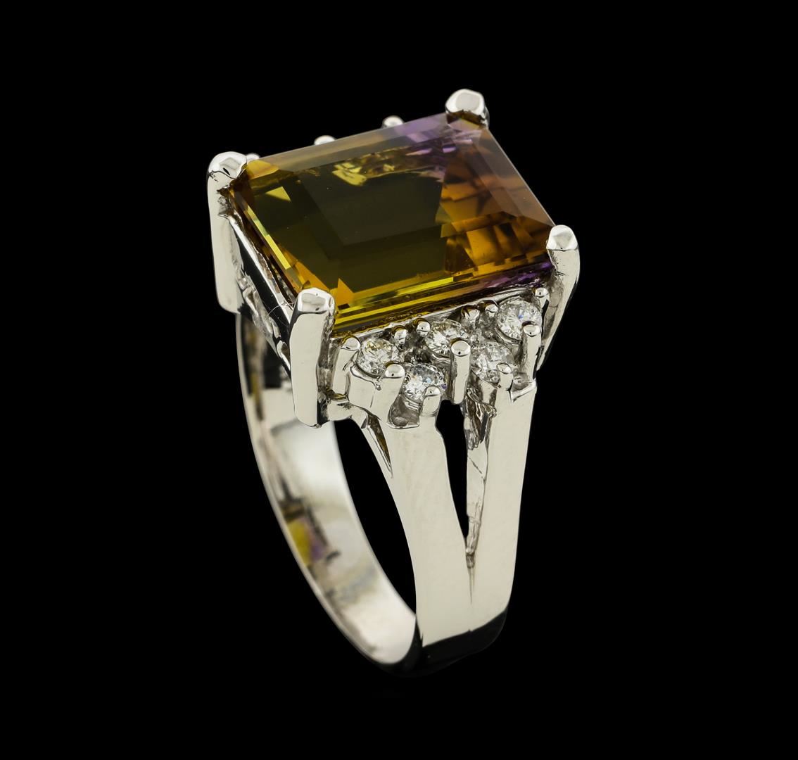 One ring : 14KT white gold weighing 6.46gm containing ametrine with a total weight of 5.87ct and diamonds weighing 0.32ctw.