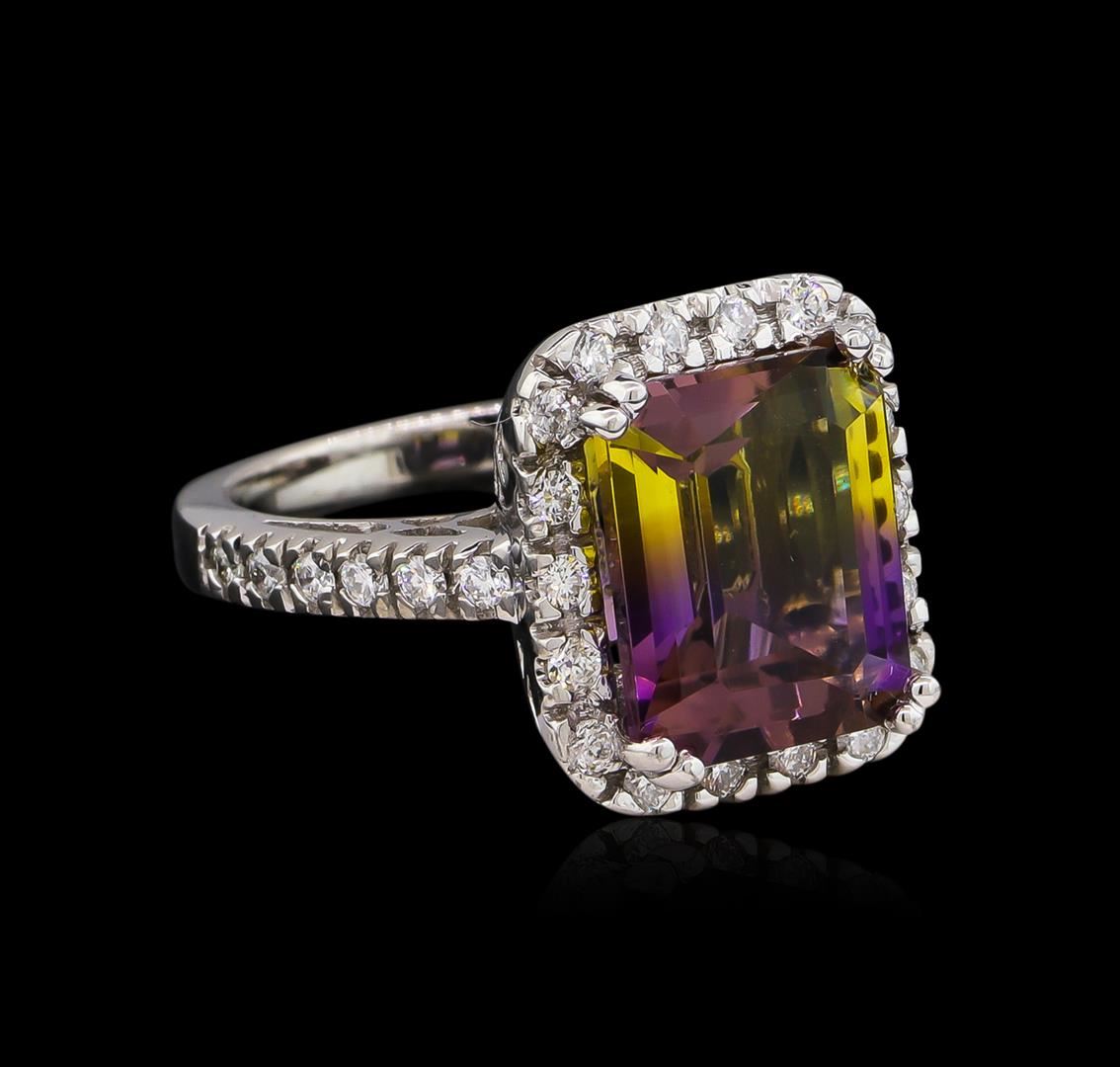 One ring featuring: 14KT white gold weighing 7.92 grams containing one ametrine with a total weight of 5.88ct and side diamonds with a total weight of 0.62ct.