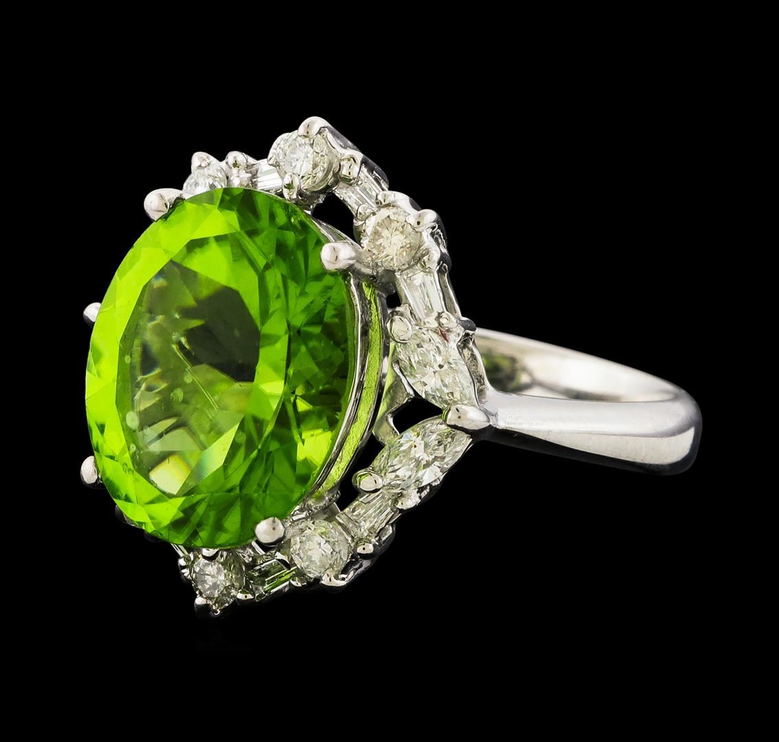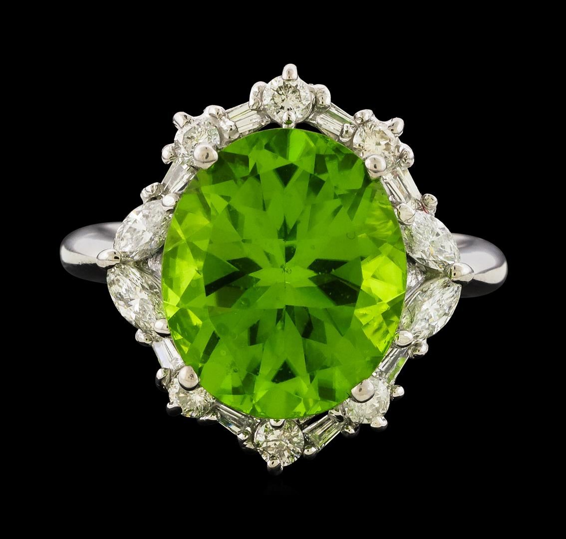 One ring featuring: Platinum containing Peridot with a total weight of 5.89ct and Diamonds with a total weight of 0.70ct. Total Weight of Ring: 7.3 grams.