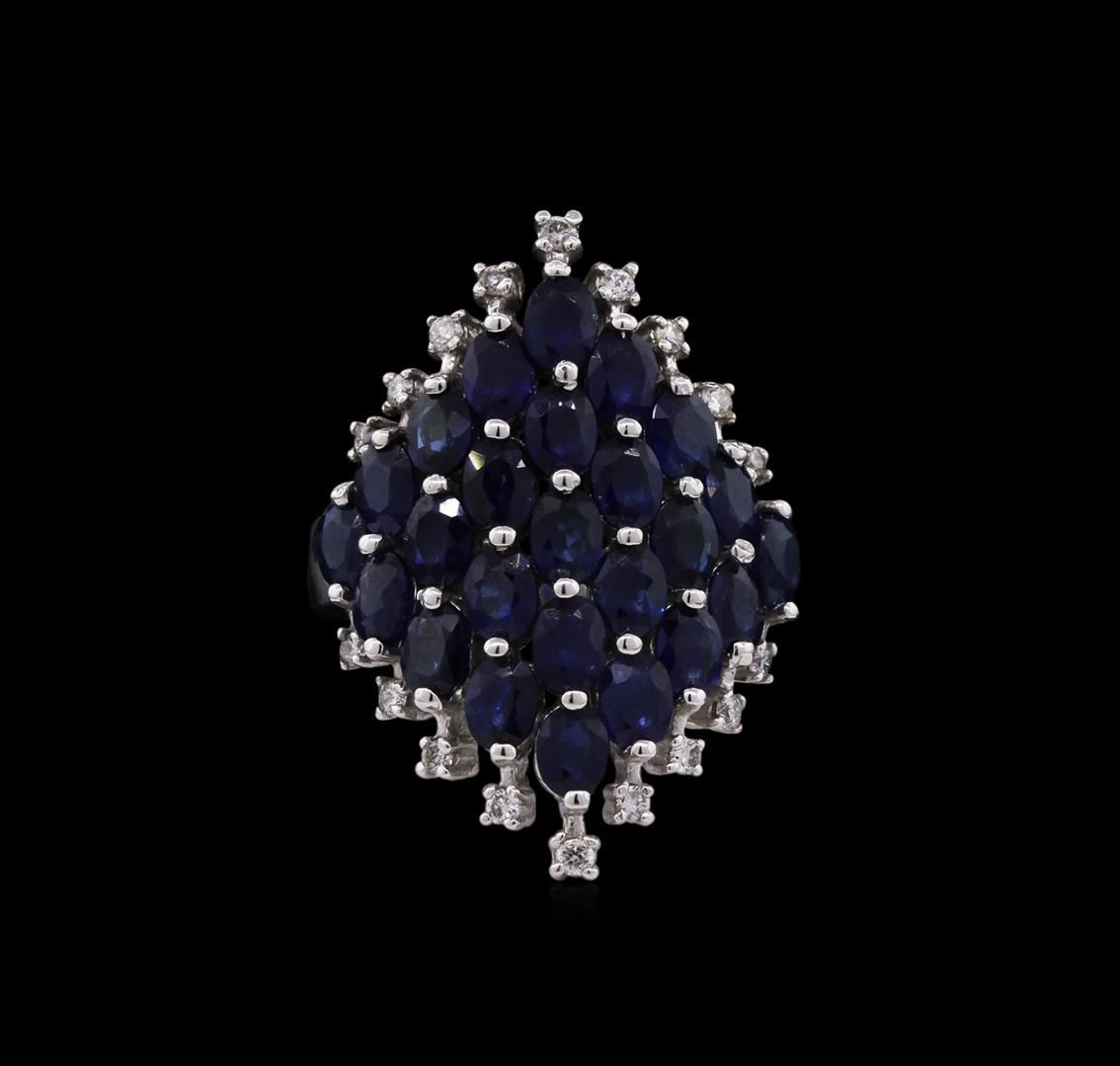 One ring featuring: 14KT white gold weighing 8.20 grams containing blue sapphires with a total weight of 5.94ct and diamonds with a total weight of 0.26ct.