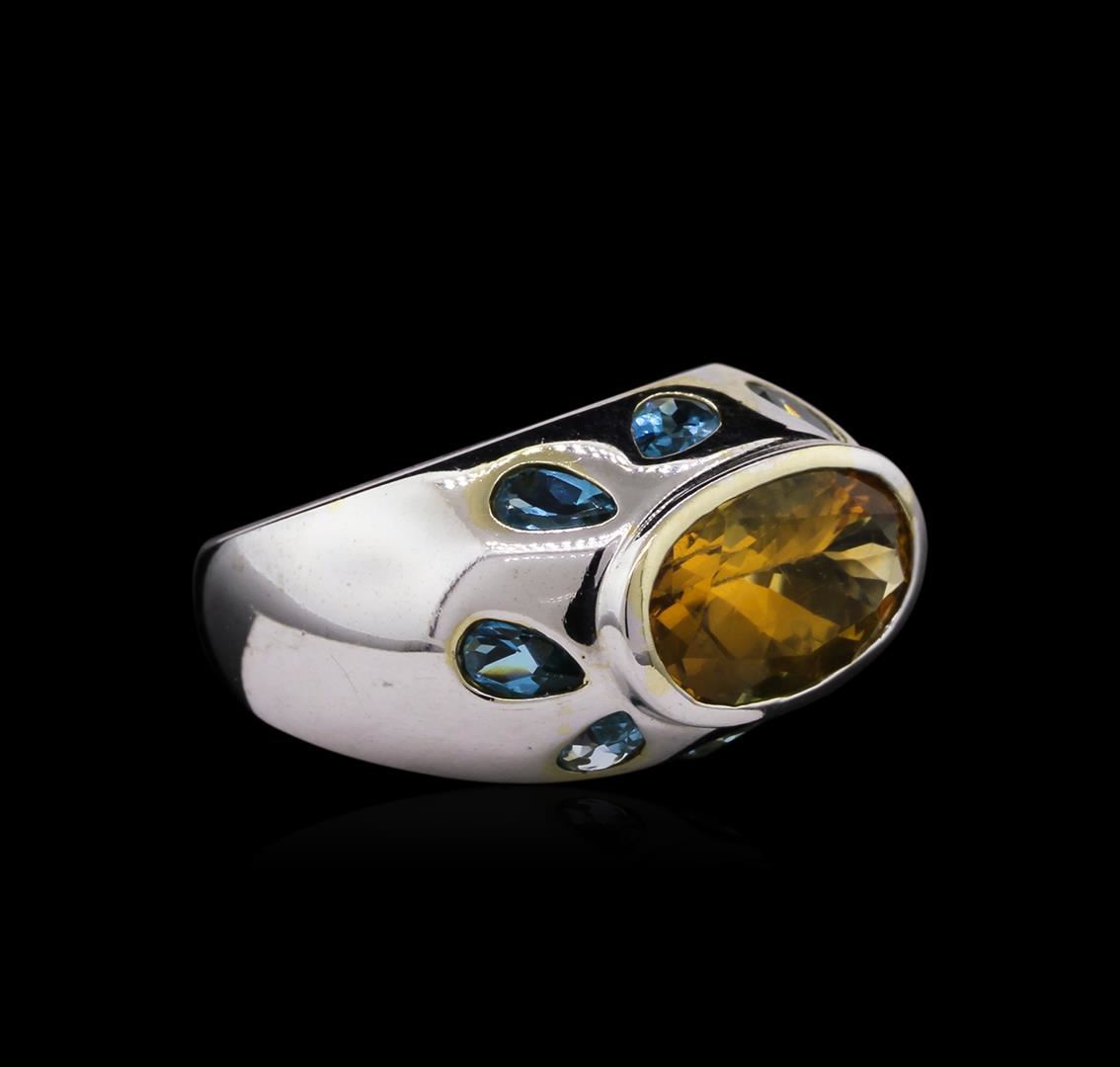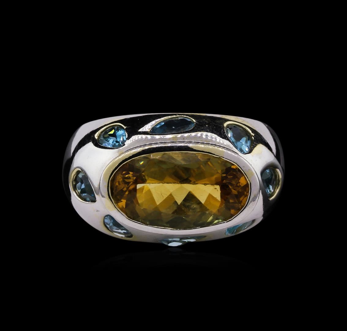 One ring featuring: 14KT white gold weighing 7.90 grams containing one citrine center stone and eight blue topaz with a total weight of 5.94ctw.