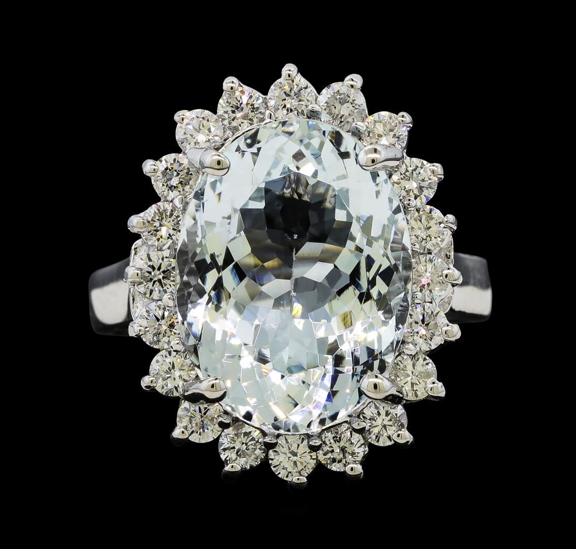 One Aquamarine and Diamond Ring including: 14KT White Gold weighing a total of 5.43 grams, Aquamarine weighing a total of 5.95ct, and 20 Diamonds weighing a total of 0.80ctw.