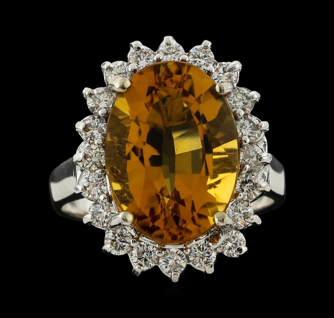 One ring : 14KT white gold weighing 5.06gm containing citrine quartz with a total weight of 5.98ct and diamonds weighing 0.75ctw.
