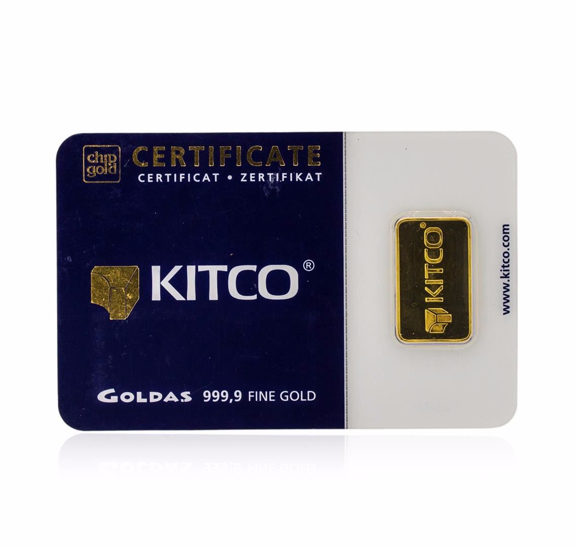 One 5 Gram Gold Bar - KITCO Certified 999.9 Fine Gold.