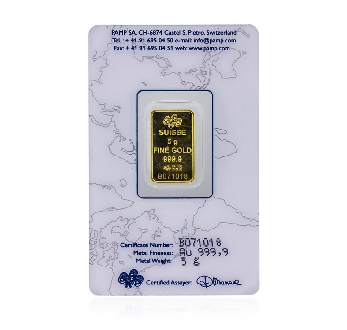 One 5 Gram Gold Bar - Pamp Suisse Lady Fortuna 999.9 Fine Gold.