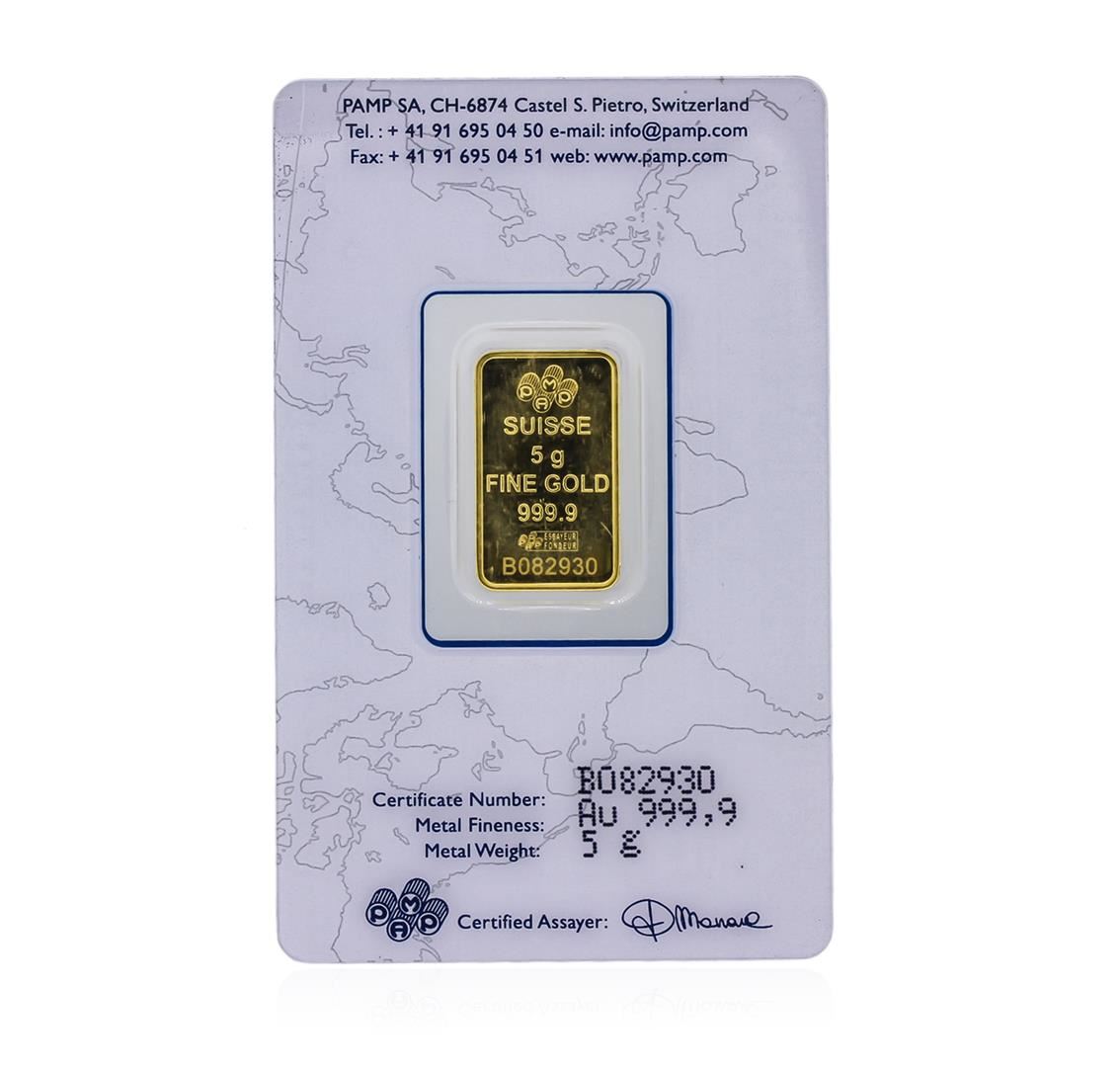 One 5 Gram Gold Bar - Pamp Suisse Lady Fortuna 999.9 Fine Gold.