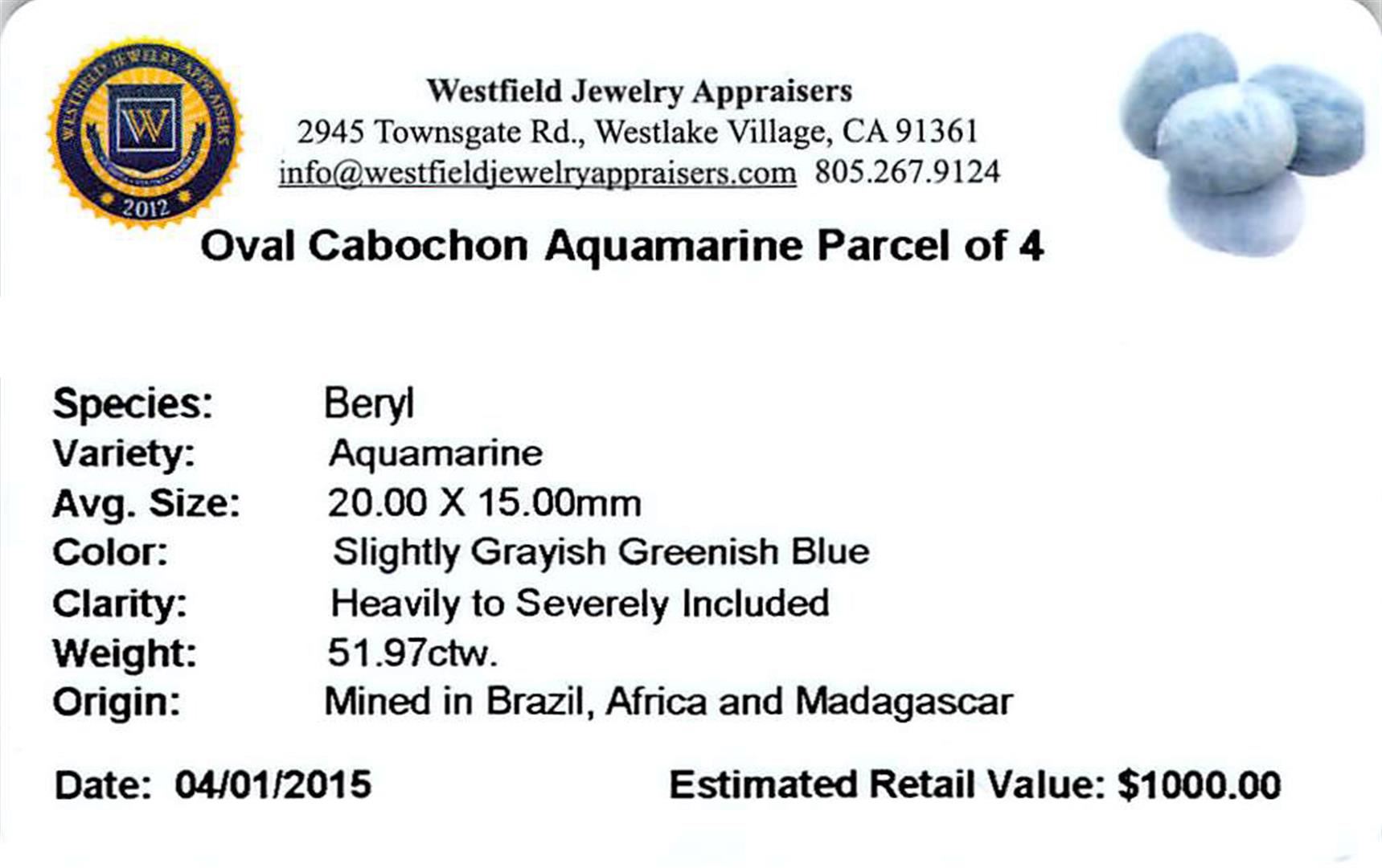 One 51.97ctw Oval Cabochon Aquamarine Parcel.