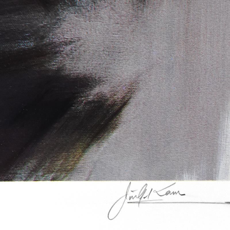 "52nd Street" is a limited edition serigraph on paper, numbered and hand signed by Jin G Kam. Includes Letter of Authenticity. Measures approx. 45" x 29" (border), 40" x 23" (image). Please note: there are creases and smudges in the white border area.