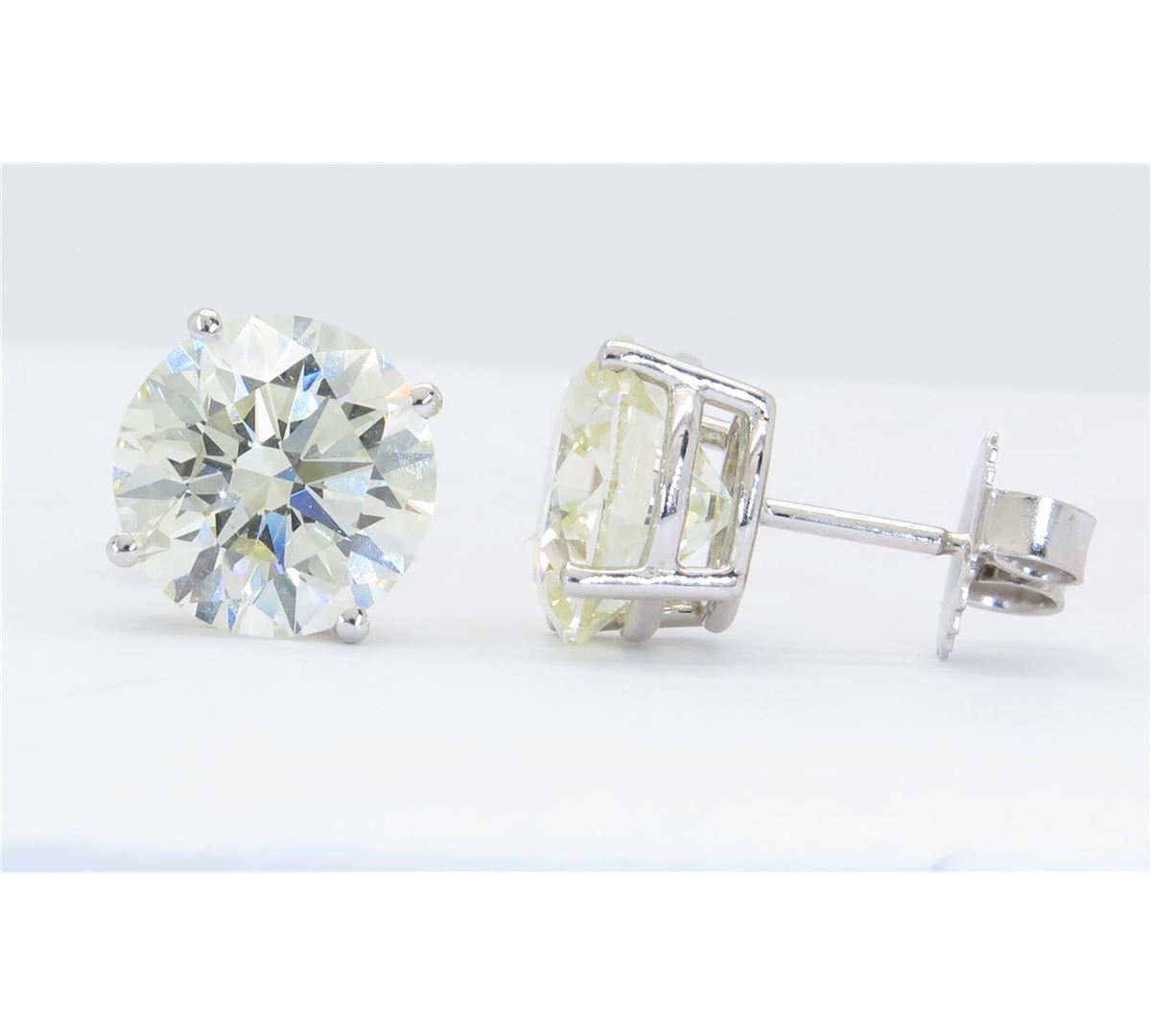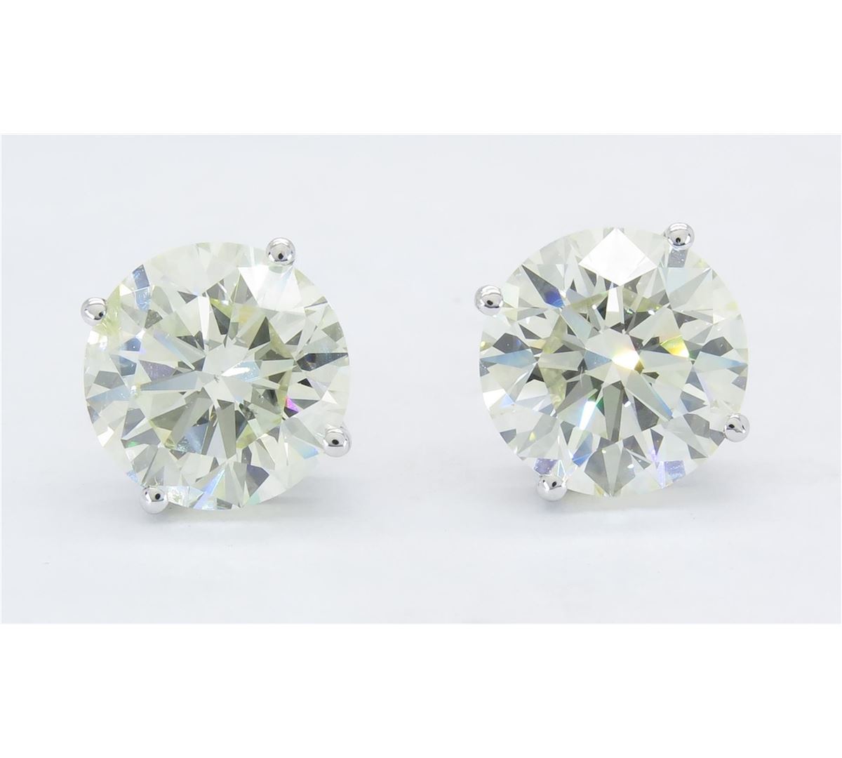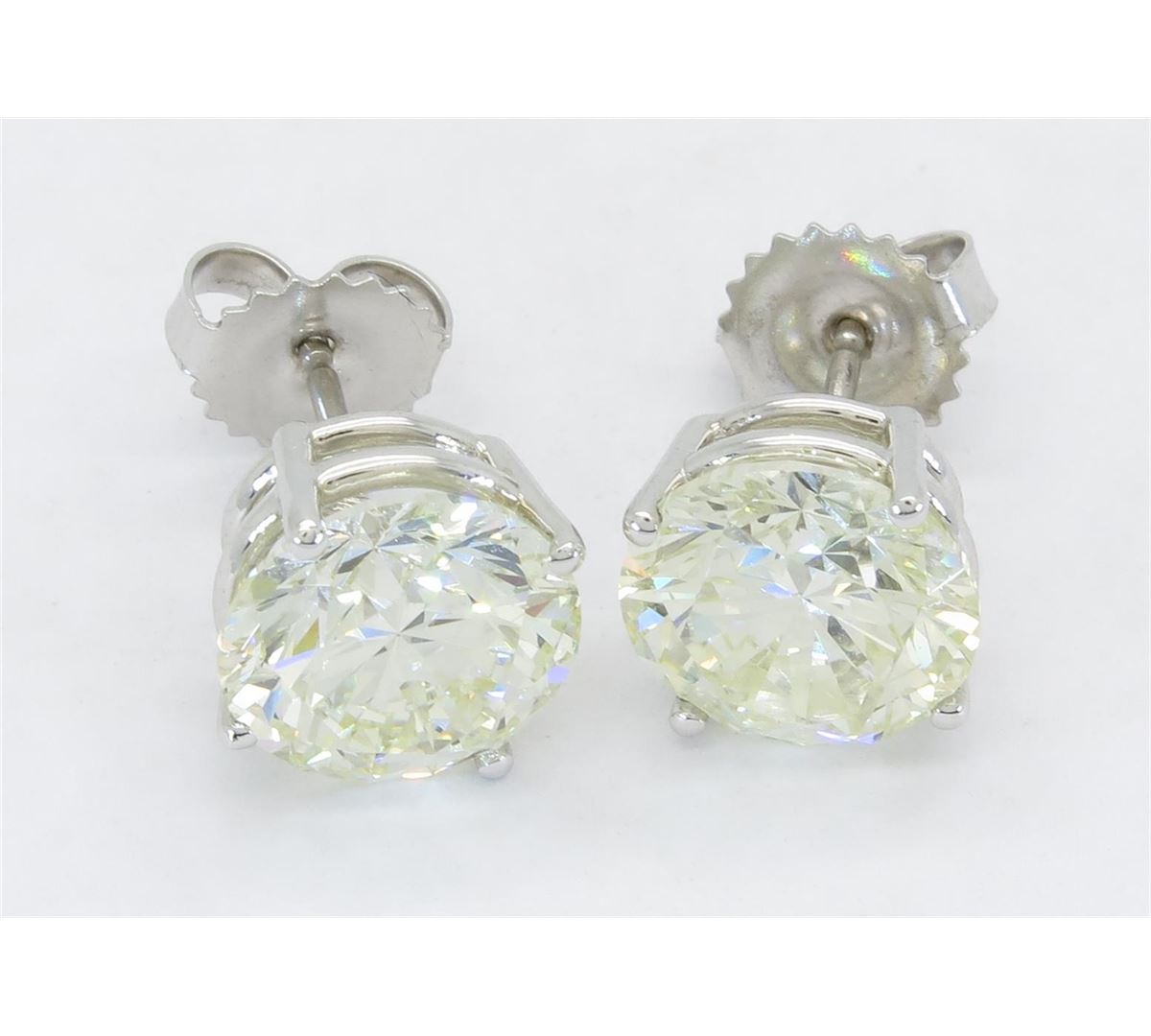 Two tested 14K white gold diamond earrings. Containing: Two Round Brilliant Cut Diamonds. Clarity: SI, Color: M-N. Approximate Total diamond weight: 6.09CTW. All diamonds are graded in the mounting unless otherwise stated. Weight of earrings: 3.0 grams.