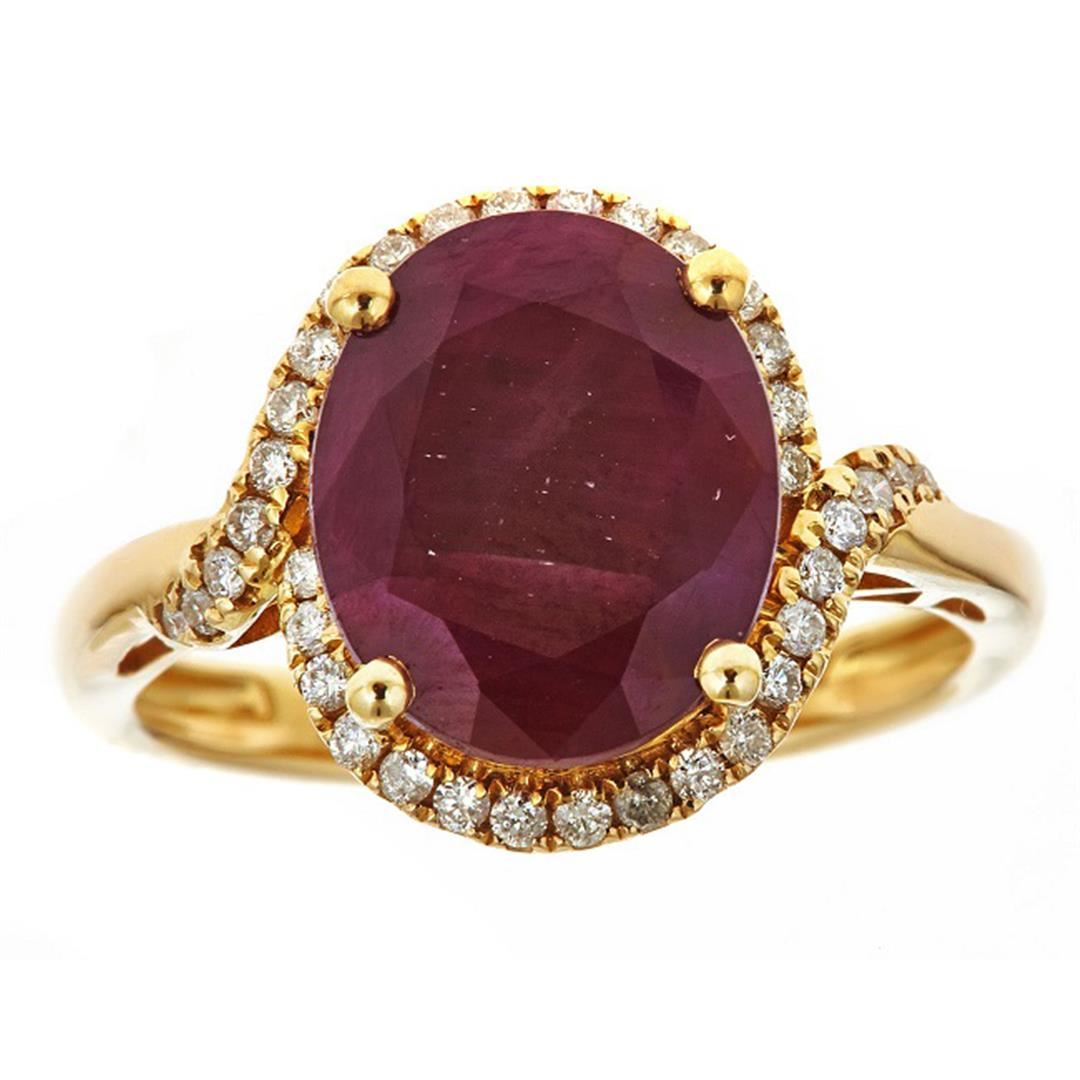 One Ring featuring: 14KT Yellow Gold weighing 3.57 grams containing Ruby with an approximate weight of 6.28ct, Diamond with an approximate weight of 0.27ct, and with an approximate weight of ct.