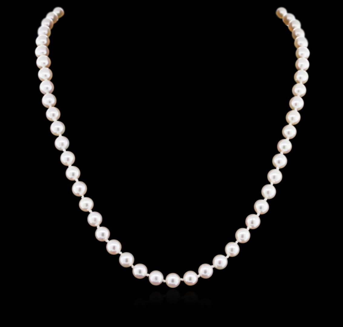 One necklace featuring: pearls that measure approximately 6.5-7mm completed by a 14KT white gold clasp. The necklace measures approximately 18" in length.