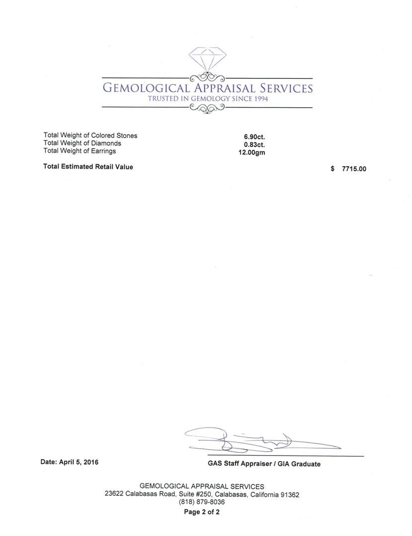 Not all Jewelry, watches or loose stones are appraised and the appraisals are provided for bidders only in certain instances at the discretion of SAA. Our appraisals are conducted by independent third-party appraisal firms. Such firms may be certified GIA Gemologists or have education in the industry or alternative certifications. Appraisals should be used for verification of gemstone and/or metal weight, size, and grade only, not actual value for resale or insurance purposes. Appraisal value should be not considered for actual value, as price varies greatly from retail locations and other merchants in different geographic locations. All Items auctioned by SAA should not be purchased with a view or expectation toward resale for appraisal price given, or to make a profit. The ultimate value for which an item can be resold may vary drastically from the appraisals listed by SAA.