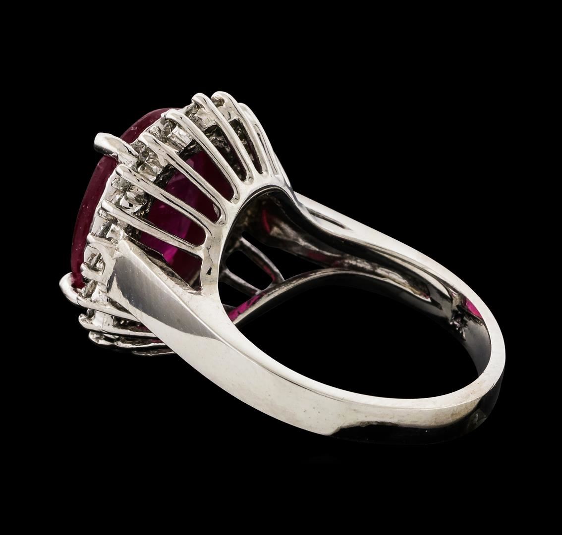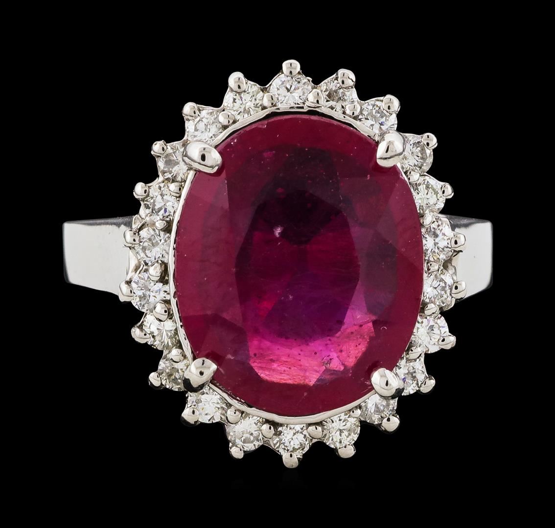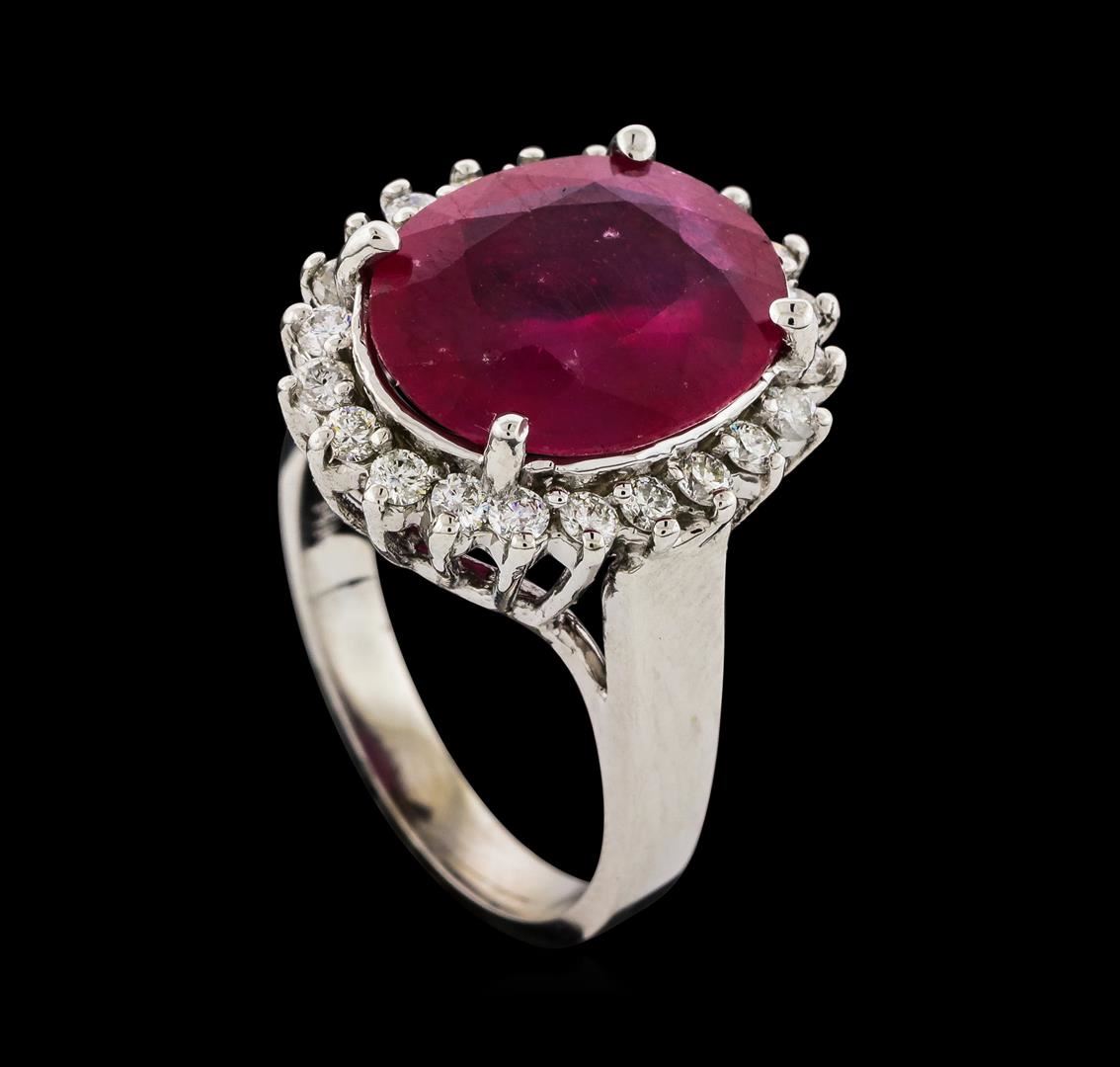 One Ruby and Diamond Ring featuring: 14KT White Gold with a total weight of 5.55 grams, Ruby with a total weight of 6.53ct, and 16 Diamonds with a total weight of 0.88ctw.