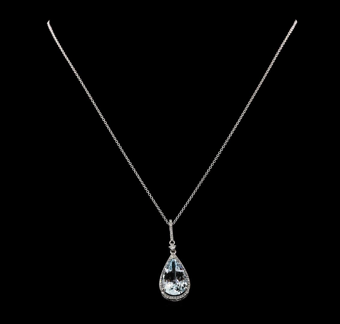 One Aquamarine and Diamond Pendant with Chain including: 14KT White Gold weighing a total of 2.87 grams, Aquamarine weighing a total of 6.54ct, and 57 Diamonds weighing a total of 0.31ctw.