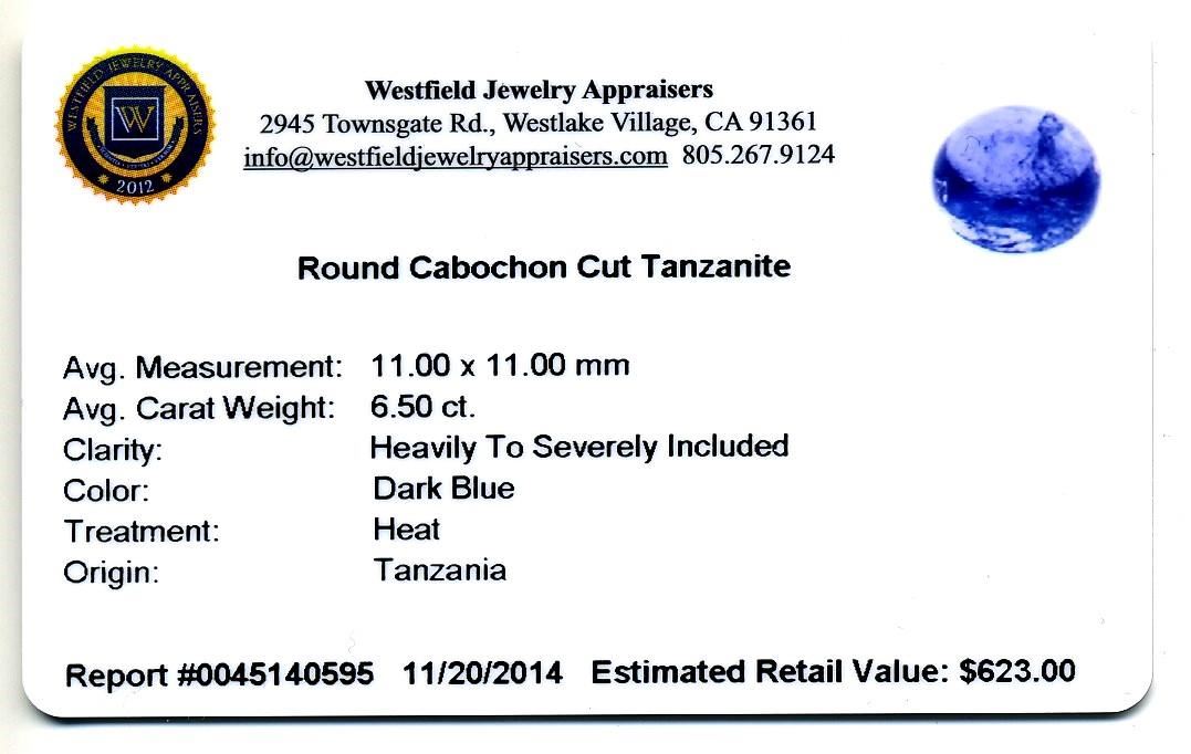 6.5ctw. Round Cabochon Cut Tanzanite. Westfield Appraised at $623.00.