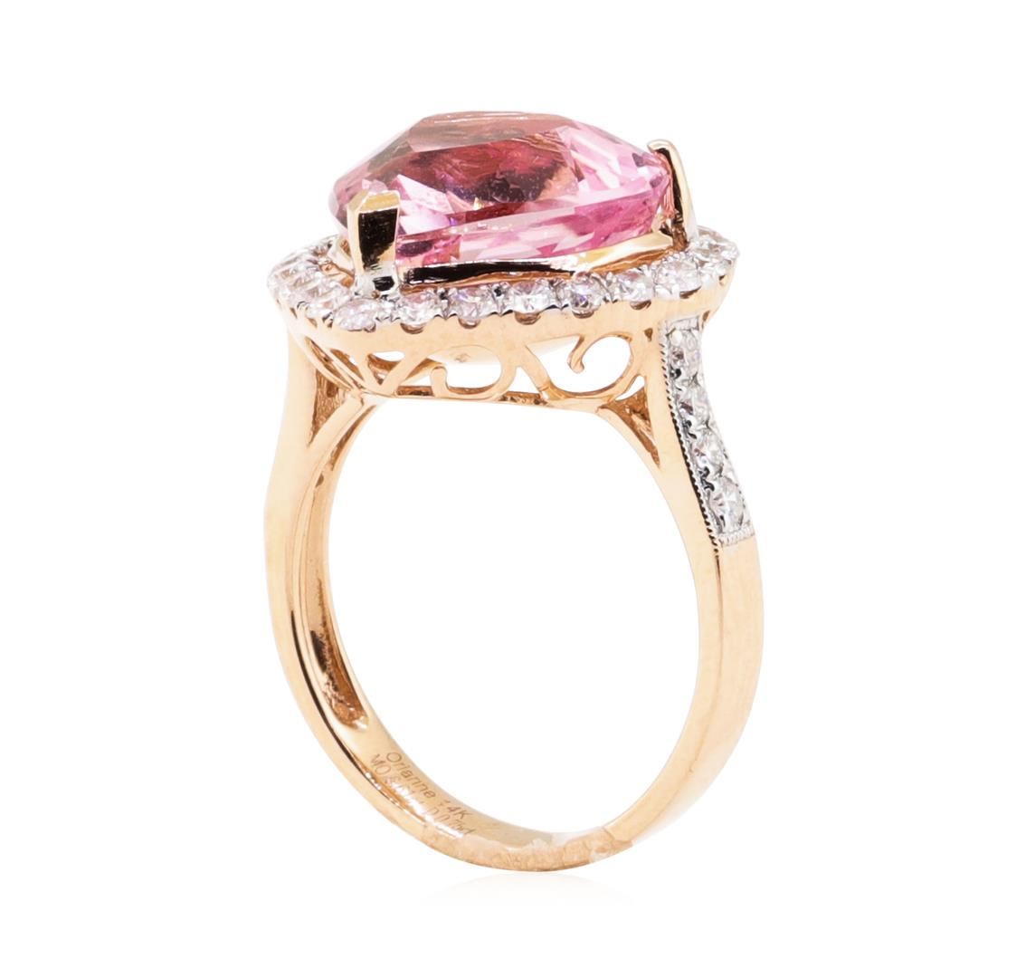 One 6.61ct Morganite and Diamond ring - 14KT Rose Gold. AIG certified. See Appraisal for more details. AIG Appraised.