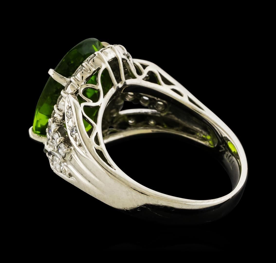 One ring featuring: Platinum containing Peridot with a total weight of 6.64ct and Diamonds with a total weight of 0.64ct. Total Weight of Ring: 10.7 grams.
