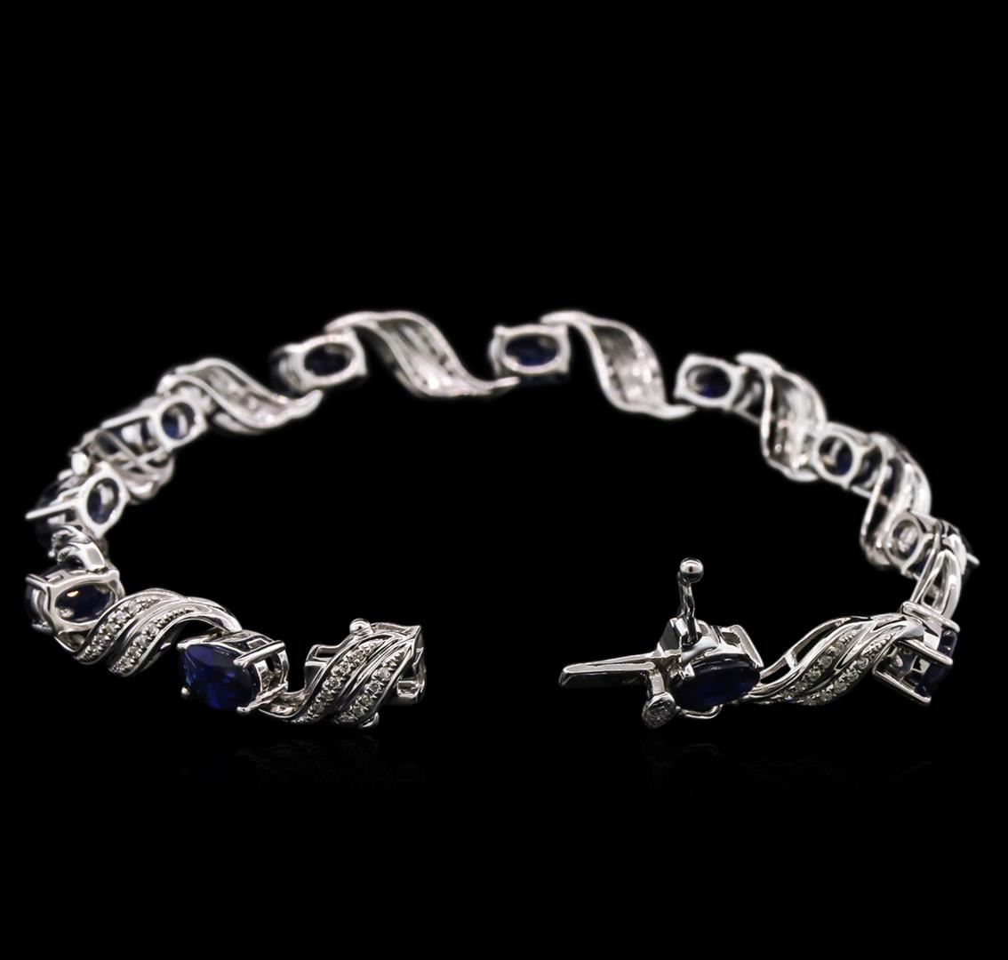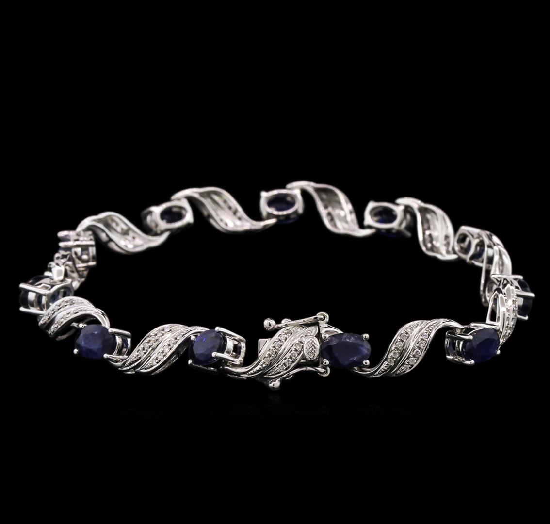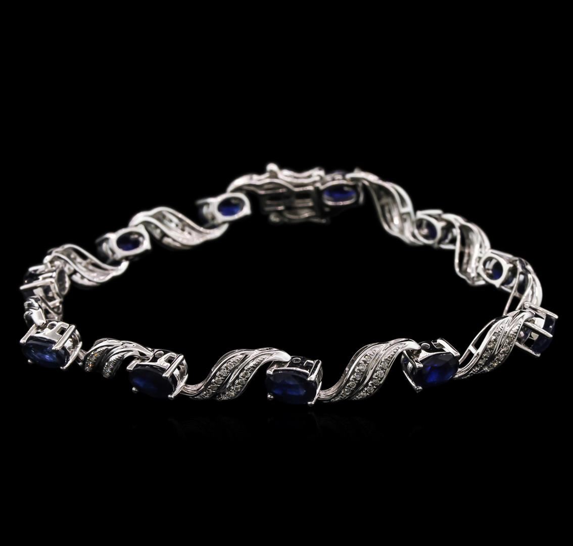 One bracelet featuring: 14KT white gold weighing 10.00 grams containing 11 blue sapphires with a total weight of 6.84ct and diamonds with a total weight of 0.28ct.