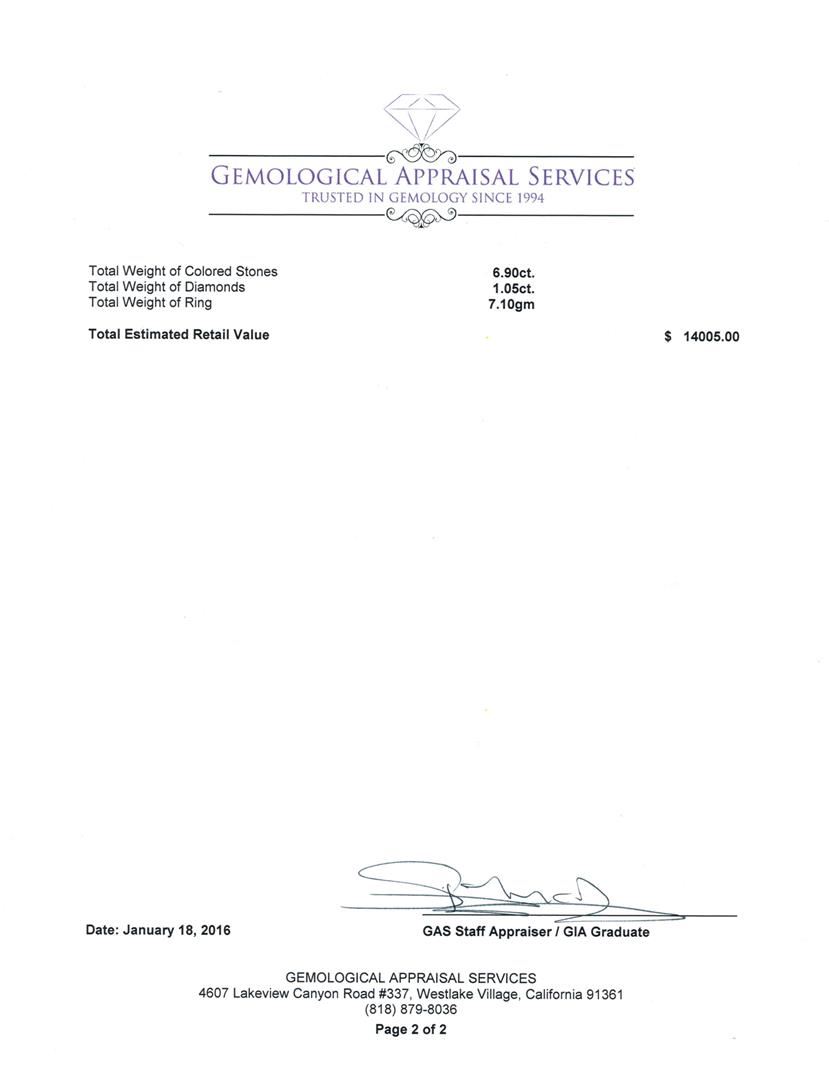 Not all Jewelry, watches or loose stones are appraised and the appraisals are provided for bidders only in certain instances at the discretion of SAA. Our appraisals are conducted by independent third-party appraisal firms. Such firms may be certified GIA Gemologists or have education in the industry or alternative certifications. Appraisals should be used for verification of gemstone and/or metal weight, size, and grade only, not actual value for resale or insurance purposes. Appraisal value should be not considered for actual value, as price varies greatly from retail locations and other merchants in different geographic locations. All Items auctioned by SAA should not be purchased with a view or expectation toward resale for appraisal price given, or to make a profit. The ultimate value for which an item can be resold may vary drastically from the appraisals listed by SAA.