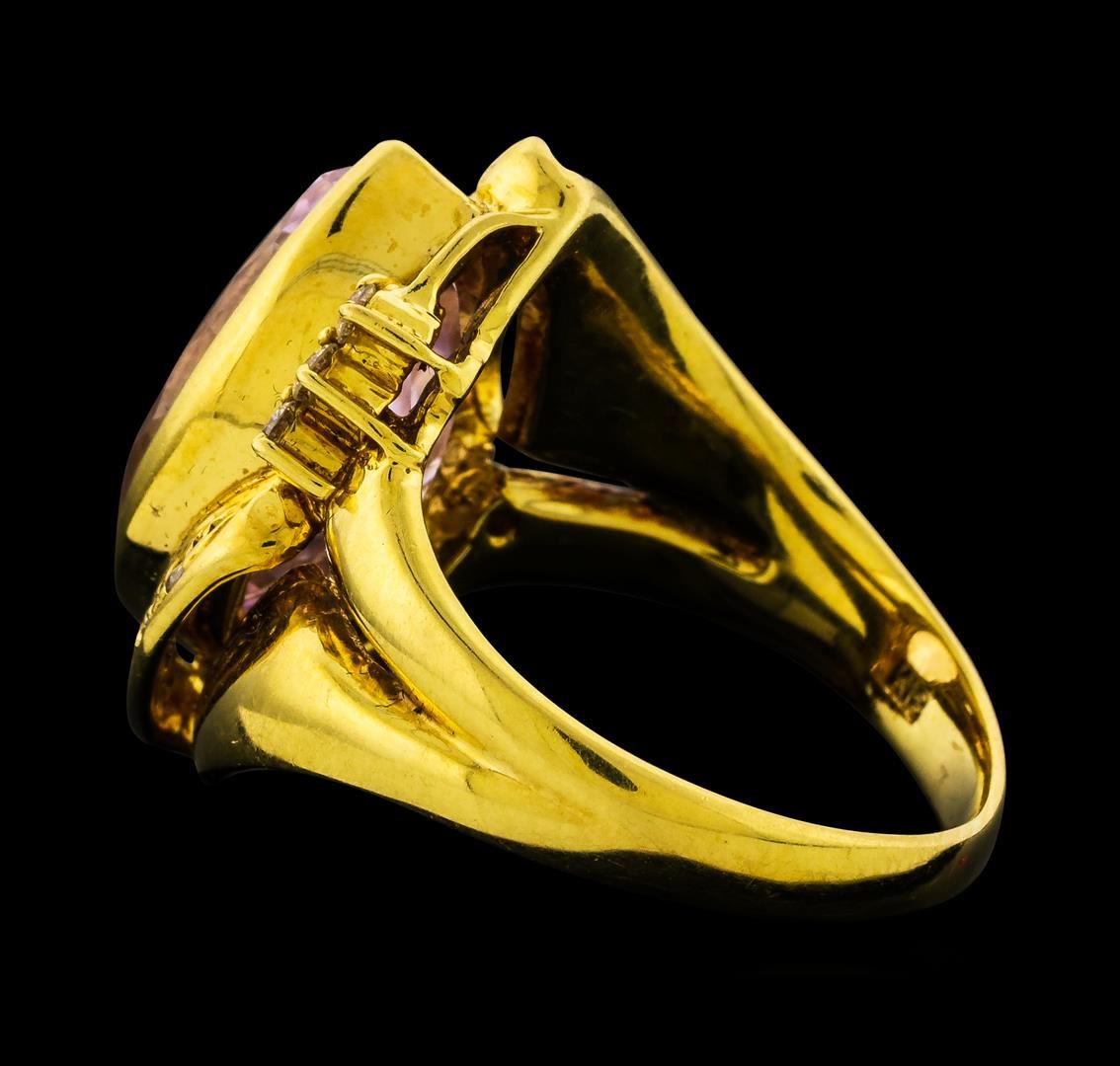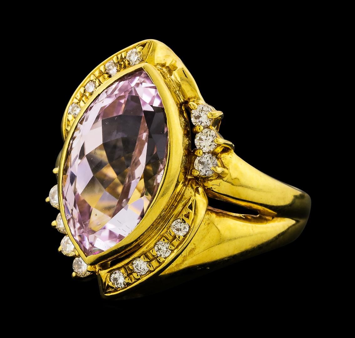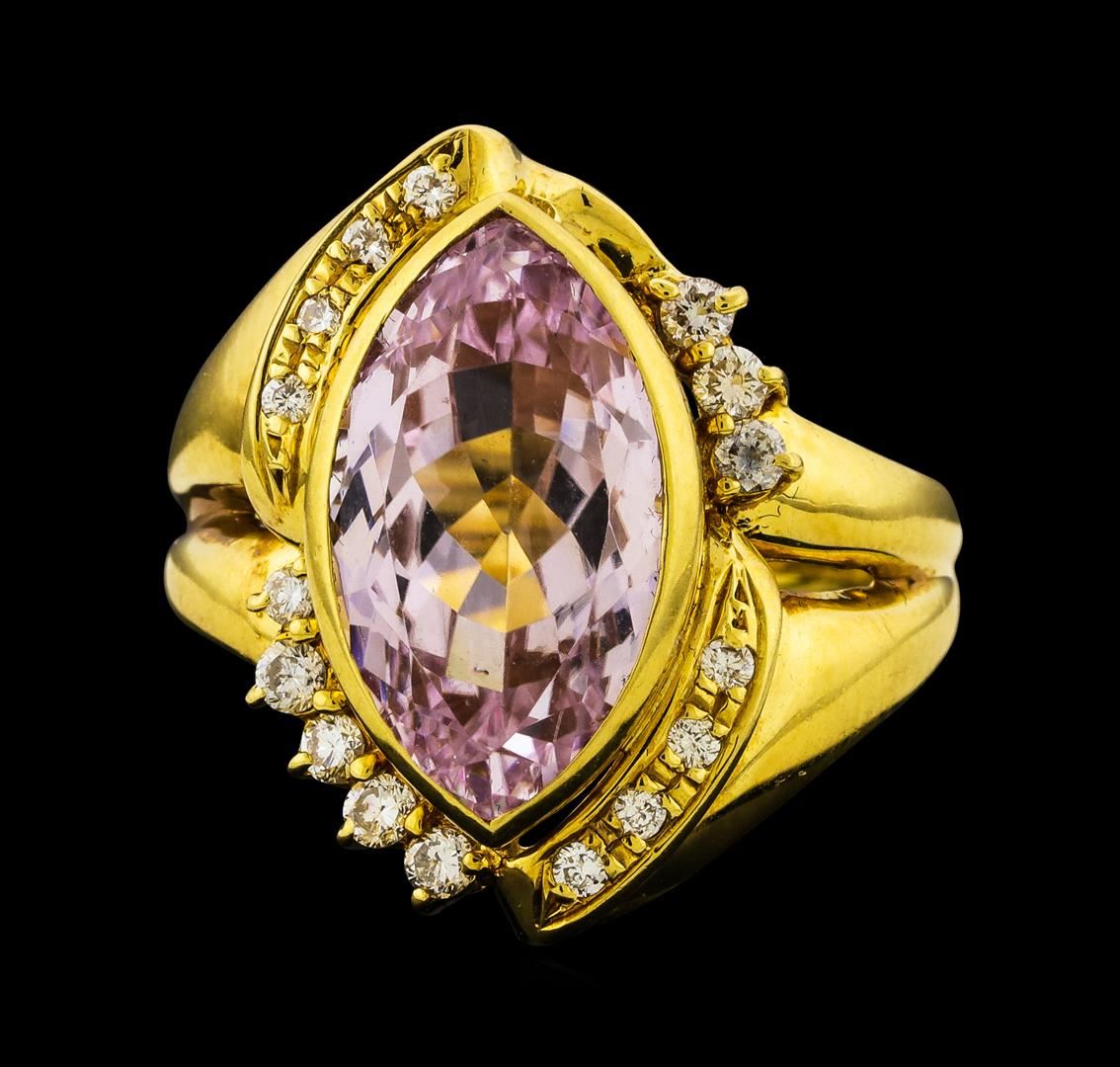 One ring featuring: 18KT Yellow Gold containing Kunzite with a total weight of 6.92ct and Diamonds with a total weight of 0.28ct. Total Weight of Ring: 10.9 grams.