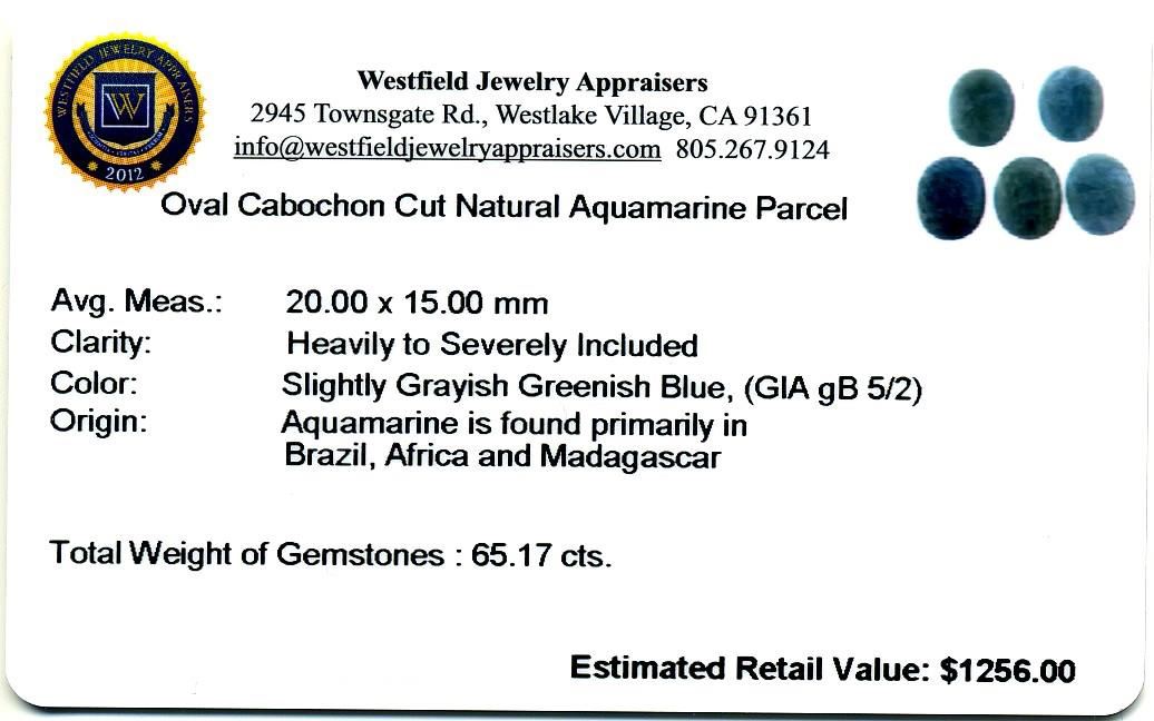 65.17cts Oval Cut Oval Cabochon Cut Natural Aquamarine Parcel. Westfield Appraised.