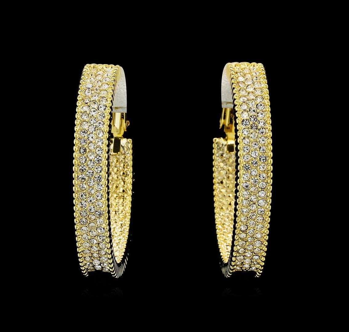 High end designer jewelry. 6x38mm Crystal Hoop Earrings - Gold Plated. Gold Plated Metal. Gold/ Clear. Hoop.