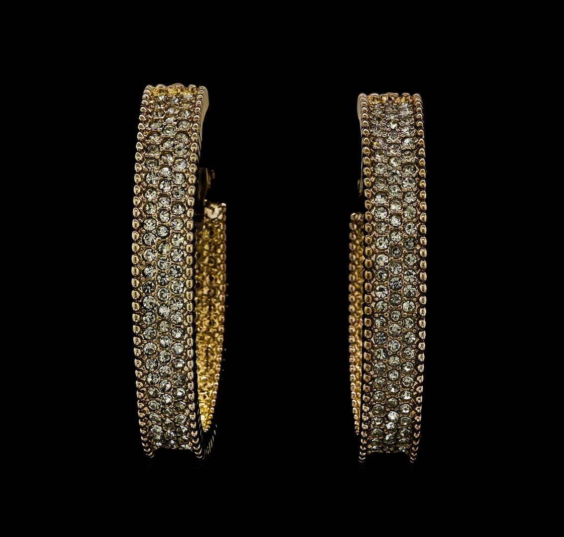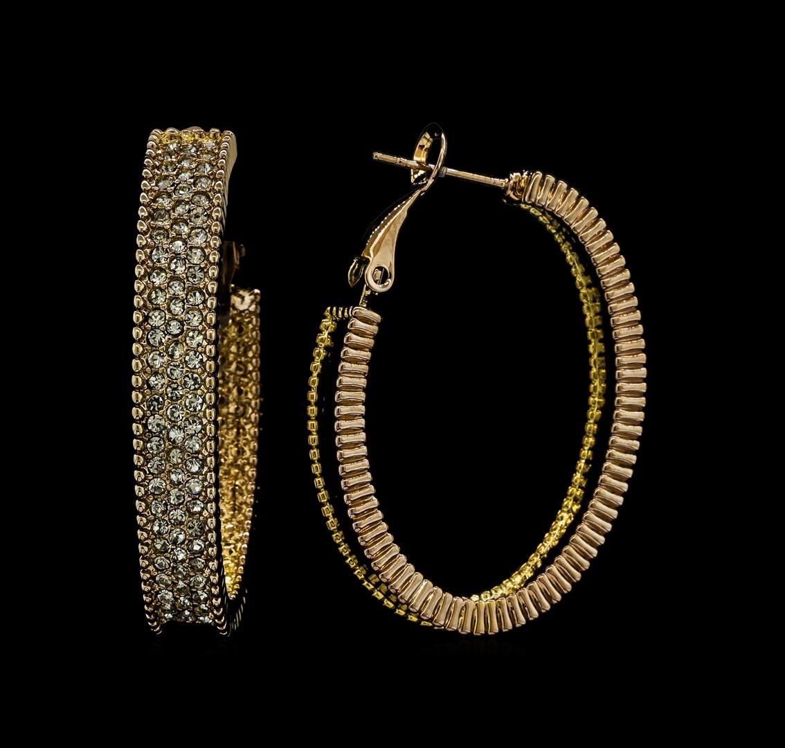 High end designer jewelry. 6x38mm Crystal Hoop Earrings - Metal. Chocolate Metal. Choc/ Smoky. Hoop.