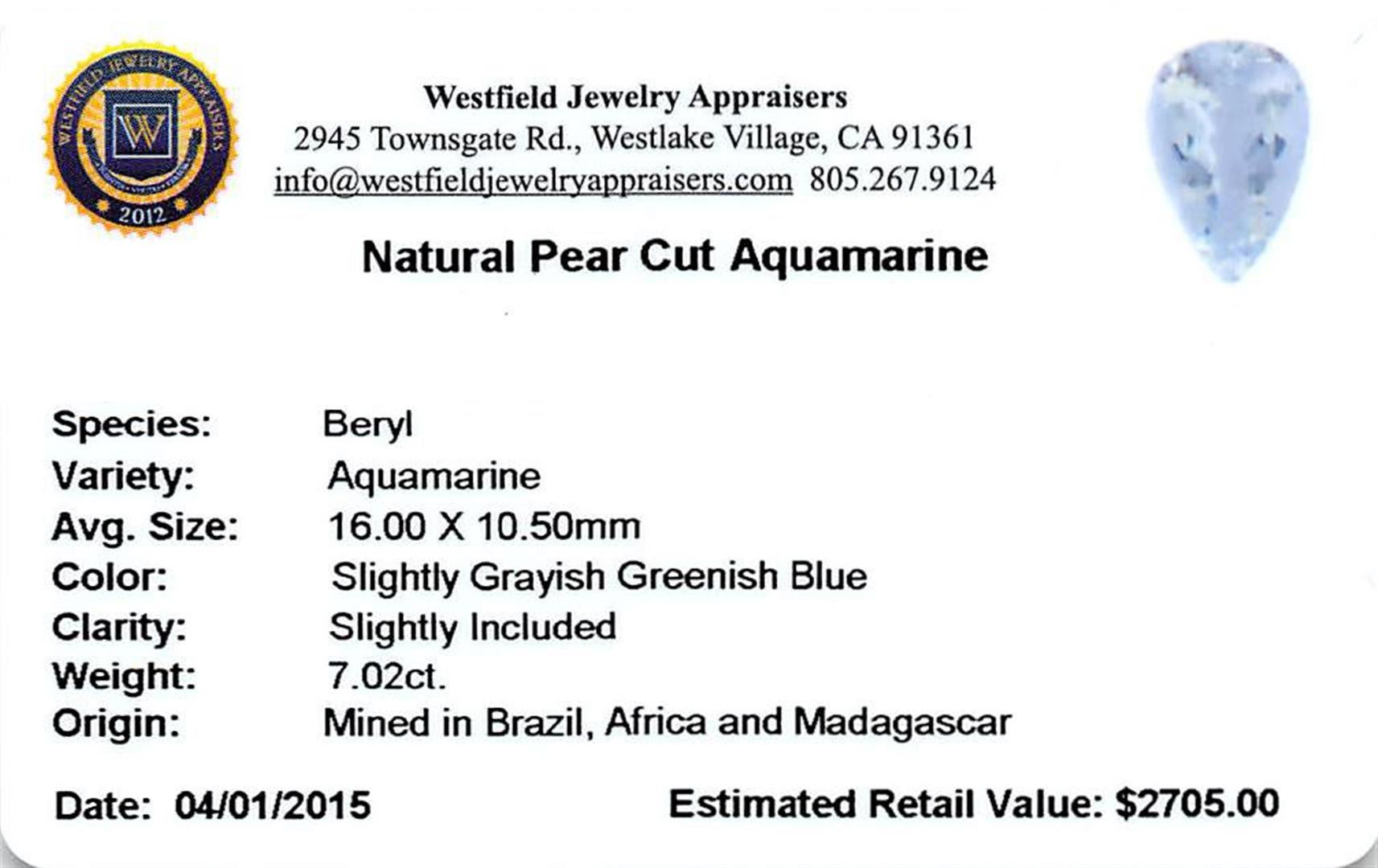 One 7.02ct Pear Aquamarine Parcel.