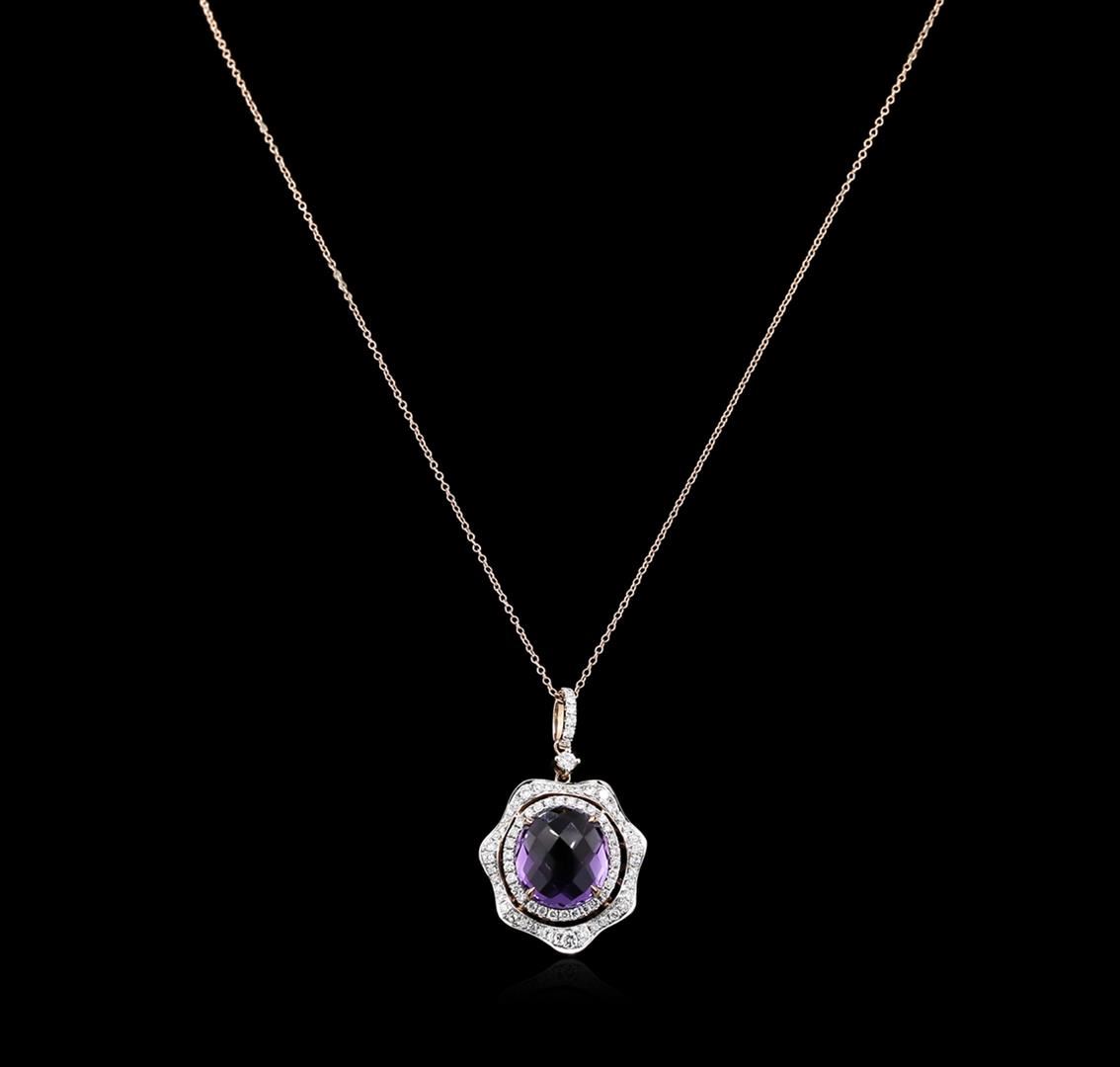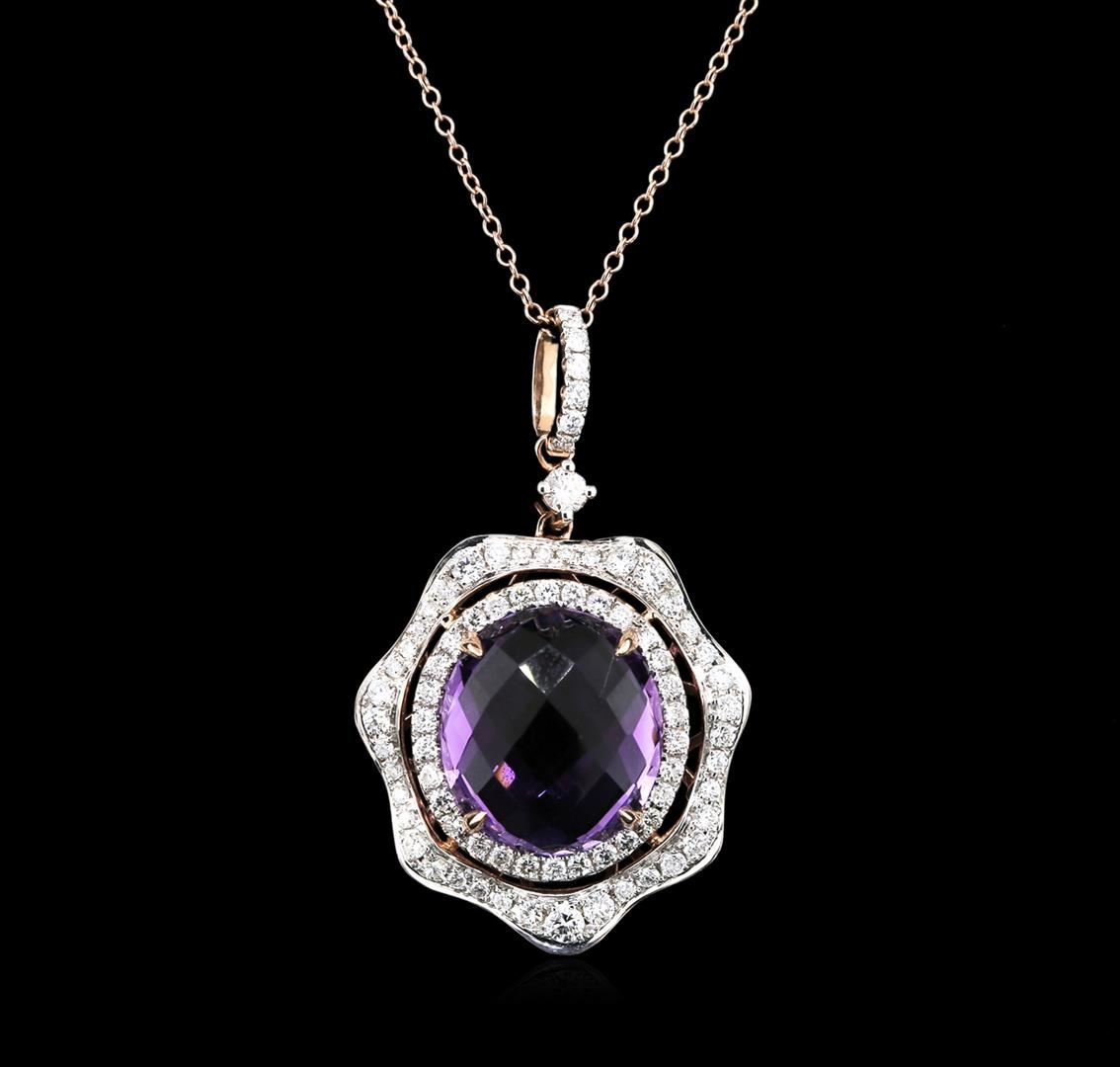 One pendant featuring: 14KT rose gold weighing 5.00 grams containing one amethyst with a total weight of 7.05ct and diamonds with a total weight of 0.91ct.