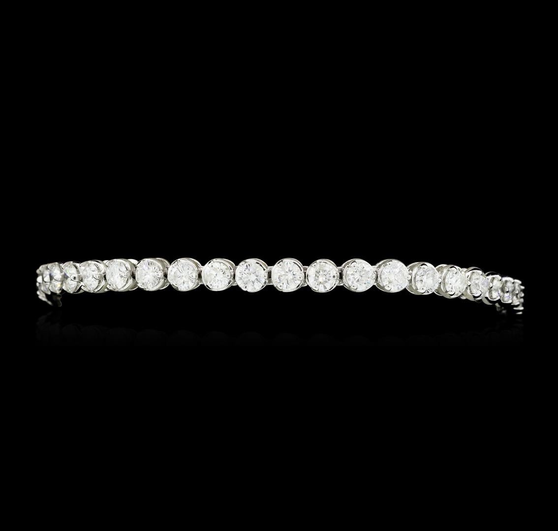 One electronically tested 18KT white gold lady's combination cast & assembled tennis bracelet with a tongue clasp with foldover safety with a bright polish finish. The featured lady's bracelet measures approximately 7.25 inches in length. Identified with markings of '18K'. Condition is new, good workmanship. Containing: Forty-One prong set round brilliant cut diamonds, measuring 3.70 - 3.50 x 2.20mm (depth est.) approximate total weight of 41 Stones = 7.15ct. Graded in the setting. Color G - I Clarity I-1 Cut Good. Total Weight of Diamonds 7.15ct.. Total Weight of Bracelet 14.50gm GAS Appraised at $14555.00. GAS Appraised at $14,555.00.