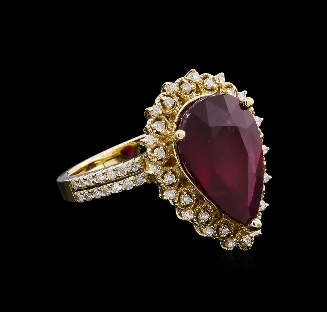 One ring featuring: 14KT yellow gold weighing 5.53 grams containing one ruby with a total weight of 7.30ct and side diamonds with a total weight of 0.40ct.