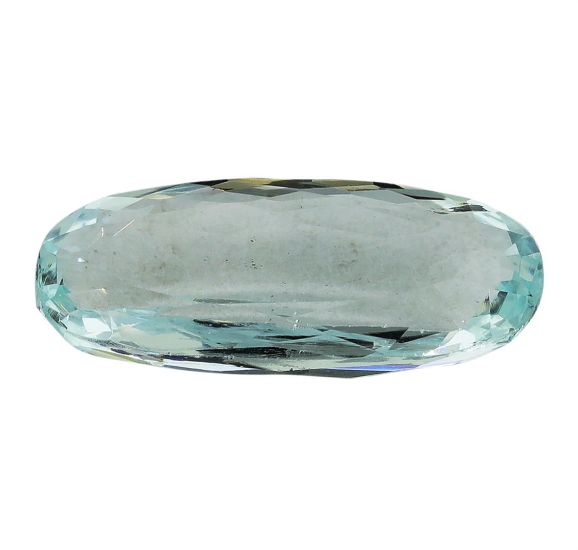 One natural oval cut aquamarine with an exact weight of 7.37ct., clarity is eye clean, slightly grayish greenish blue, medium light. Gemological Appraisals Services estimates the retail value at $2837.45 GAS Appraised.