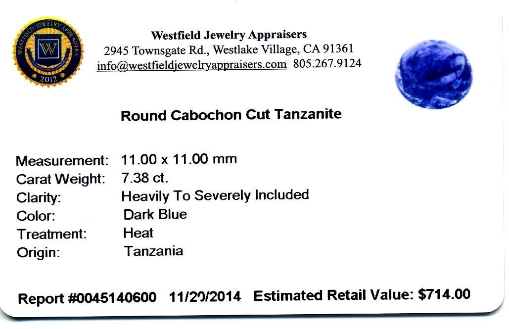7.38ctw. Round Cabochon Cut Tanzanite. Westfield Appraised at $714.00.
