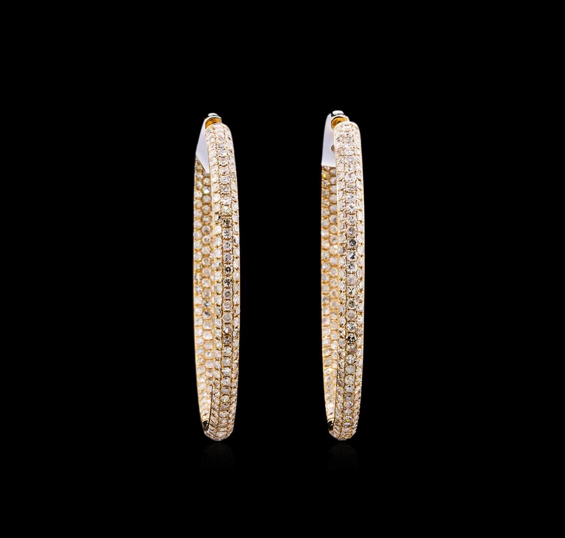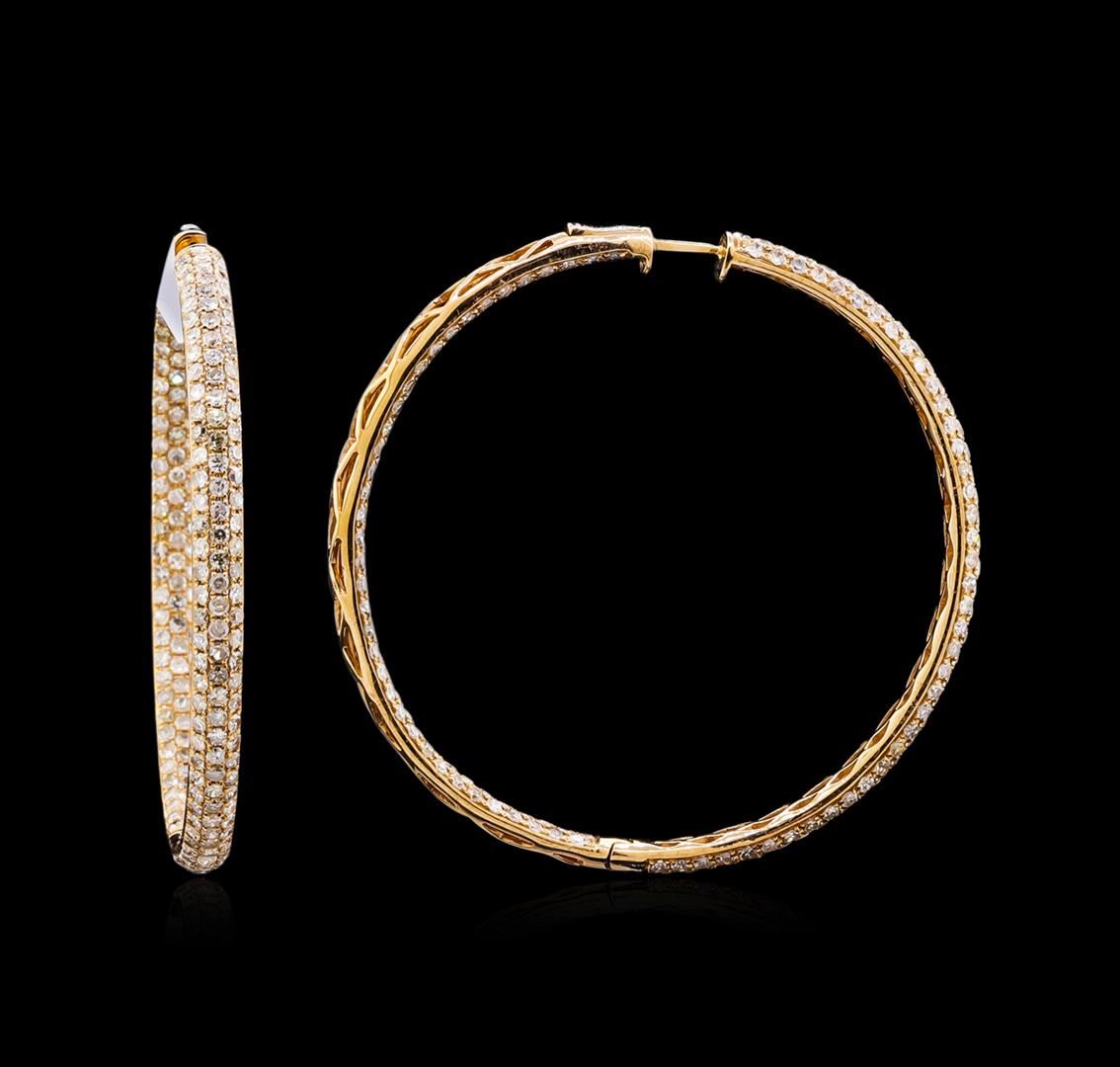 One pair electronically tested 18KT rose gold lady's combination cast & assembled hoop style earrings with hinged, snap locking posts with a bright polish finish. Trademark is MICHA. Identified with markings of "18K 750". Condition is new, good workmanship. Containing: Eighty prong set single cut diamonds, measuring 1.80 - 1.70 x 1.10mm (depth est.) approximate total weight of 80 Stones = 1.65ct. Graded in the setting. Clarity: SI-1 to I-1. Color: H - Good Three Hundred Eighty-Two prong set single cut diamonds, measuring 1.60 - 1.55 x 1.00mm (depth est.) approximate total weight of 382 Stones = 5.80ct. Graded in the setting. Clarity: SI-1 to I-1. Color: H - Good. Total Weight of Diamonds 7.45ct. Total Weight of Earrings 19.60gm. GAS Appraised at $15,135.00.