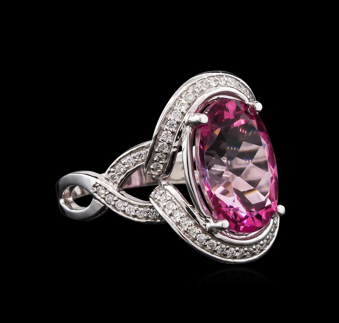 One ring featuring: 14KT white gold weighing 7.50 grams containing one pink topaz with a total weight of 7.45ct and diamonds with a total weight of 0.35ct.