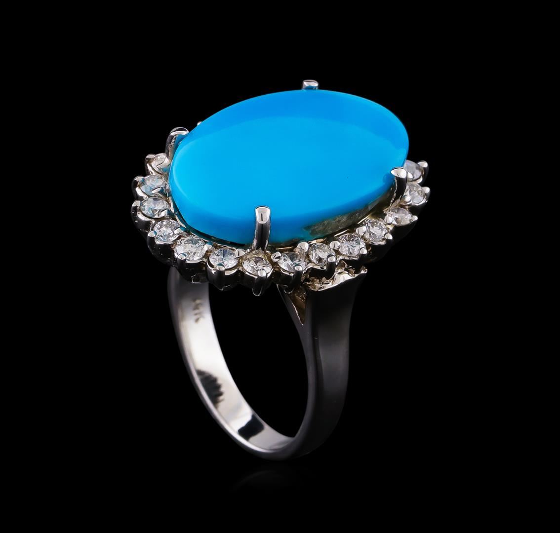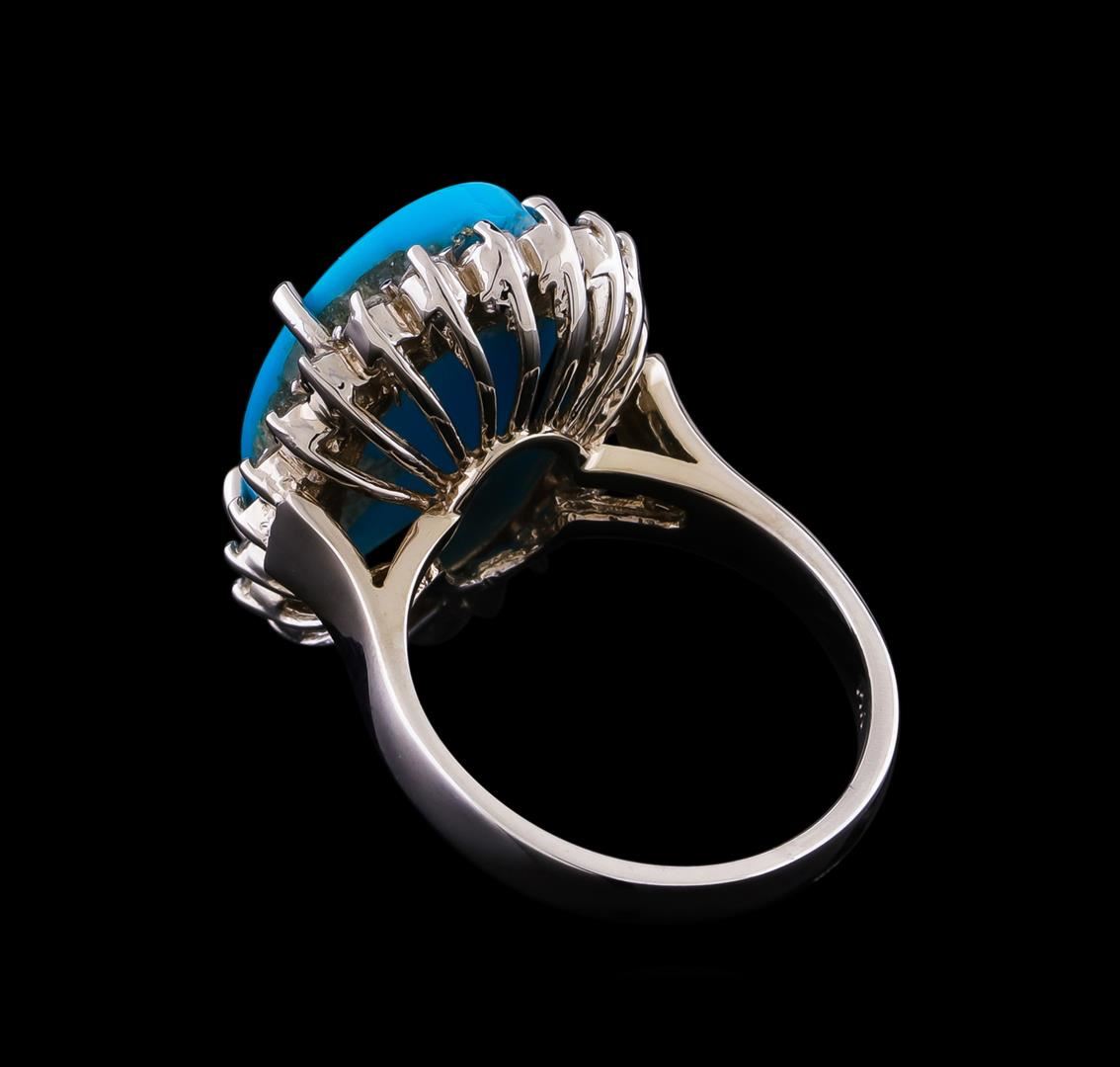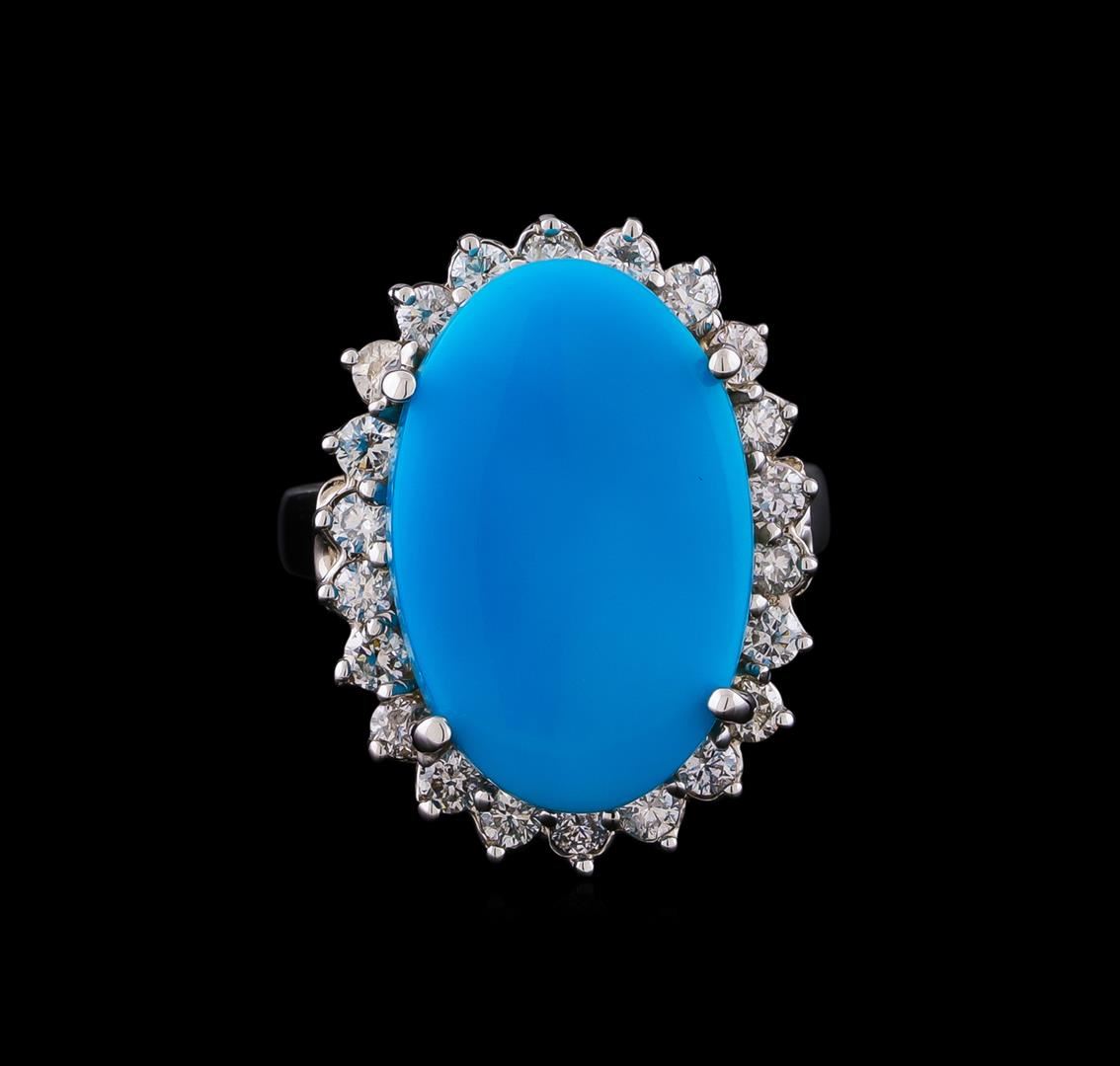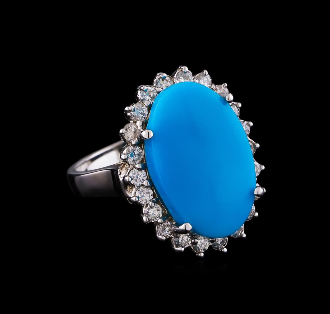 One ring featuring: 14KT white gold weighing 6.26 grams containing one turquoise center stone with a total weight of 7.52ct and diamonds with a total weight of 0.70ct.