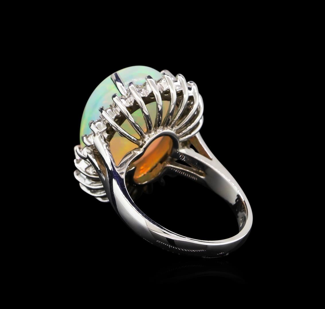 One ring featuring: 14KT white gold weighing 6.45 grams containing one opal with a total weight of 7.55ct and side diamonds with a total weight of 0.68ct.