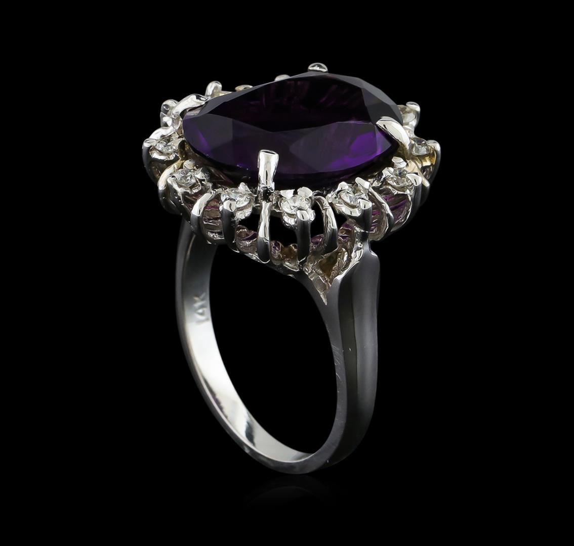 One Ring featuring: 14KT White Gold weighing 6.85 grams containing one Amethyst center stone with a total weight of 7.77ct and Diamonds with a total weight of 0.35ct.