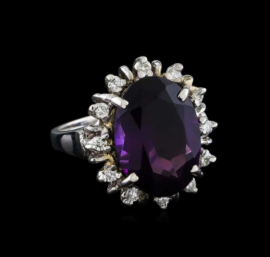 One Ring featuring: 14KT White Gold weighing 6.85 grams containing one Amethyst center stone with a total weight of 7.77ct and Diamonds with a total weight of 0.35ct.