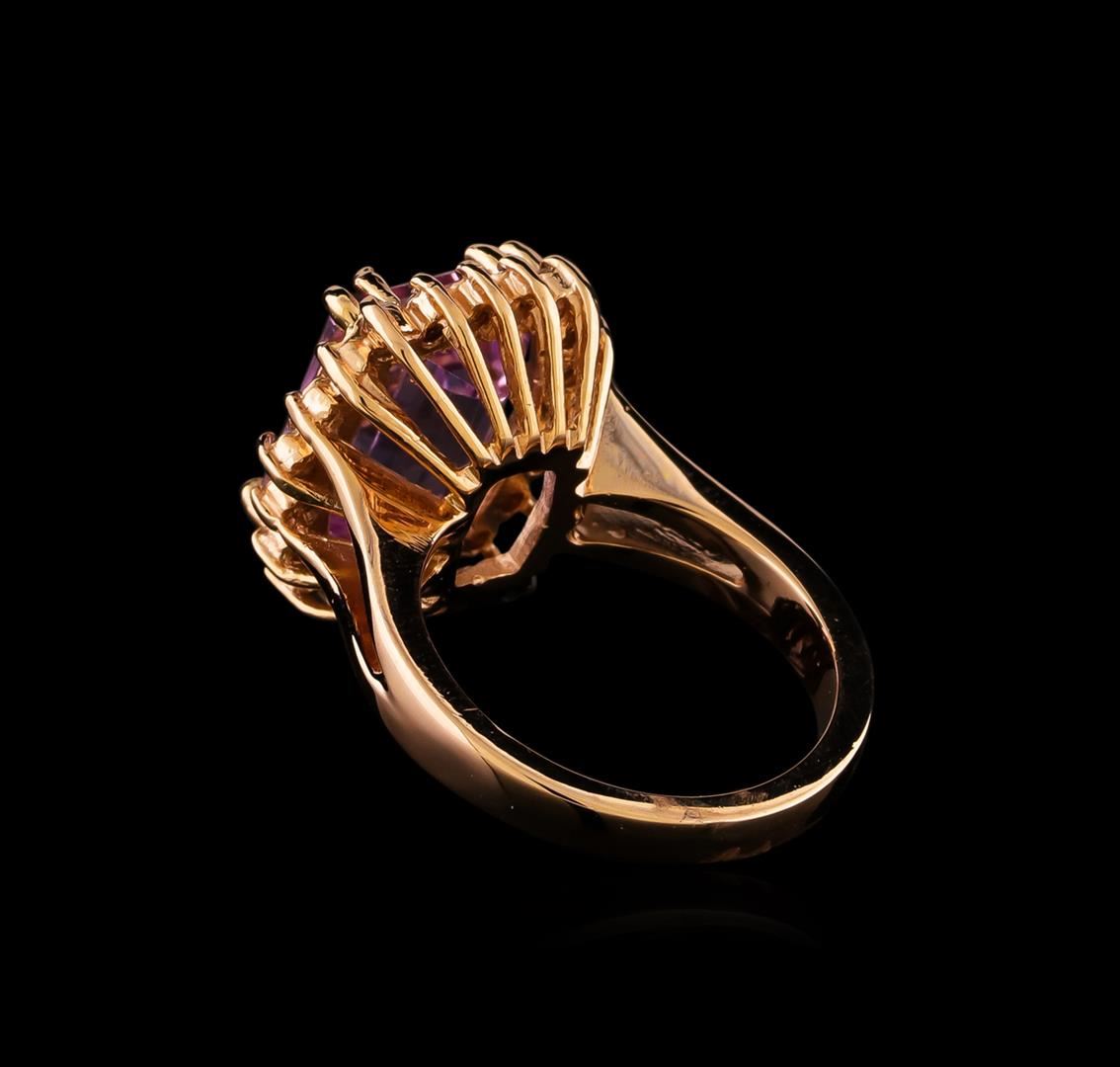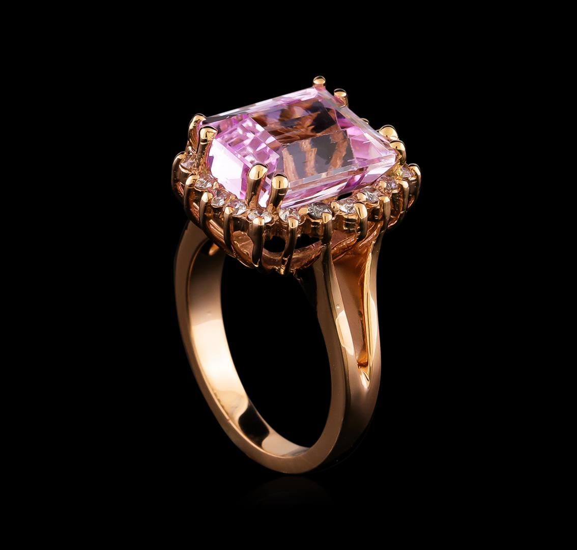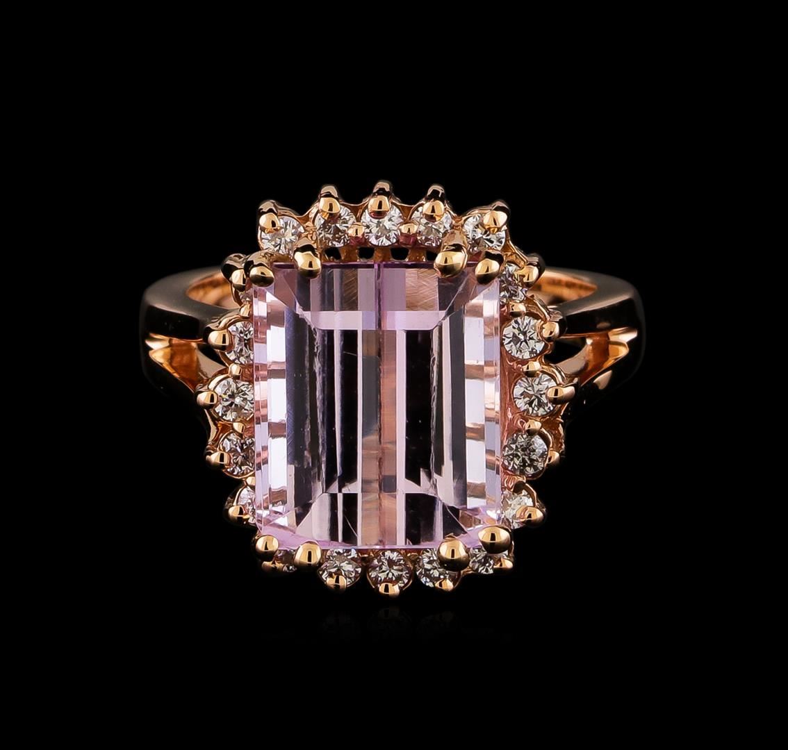 One ring featuring: 14KT Rose Gold weighing 6.76 grams containing one Kunzite center stone with a total weight of 7.82ct and diamonds with a total weight of 0.44ct.