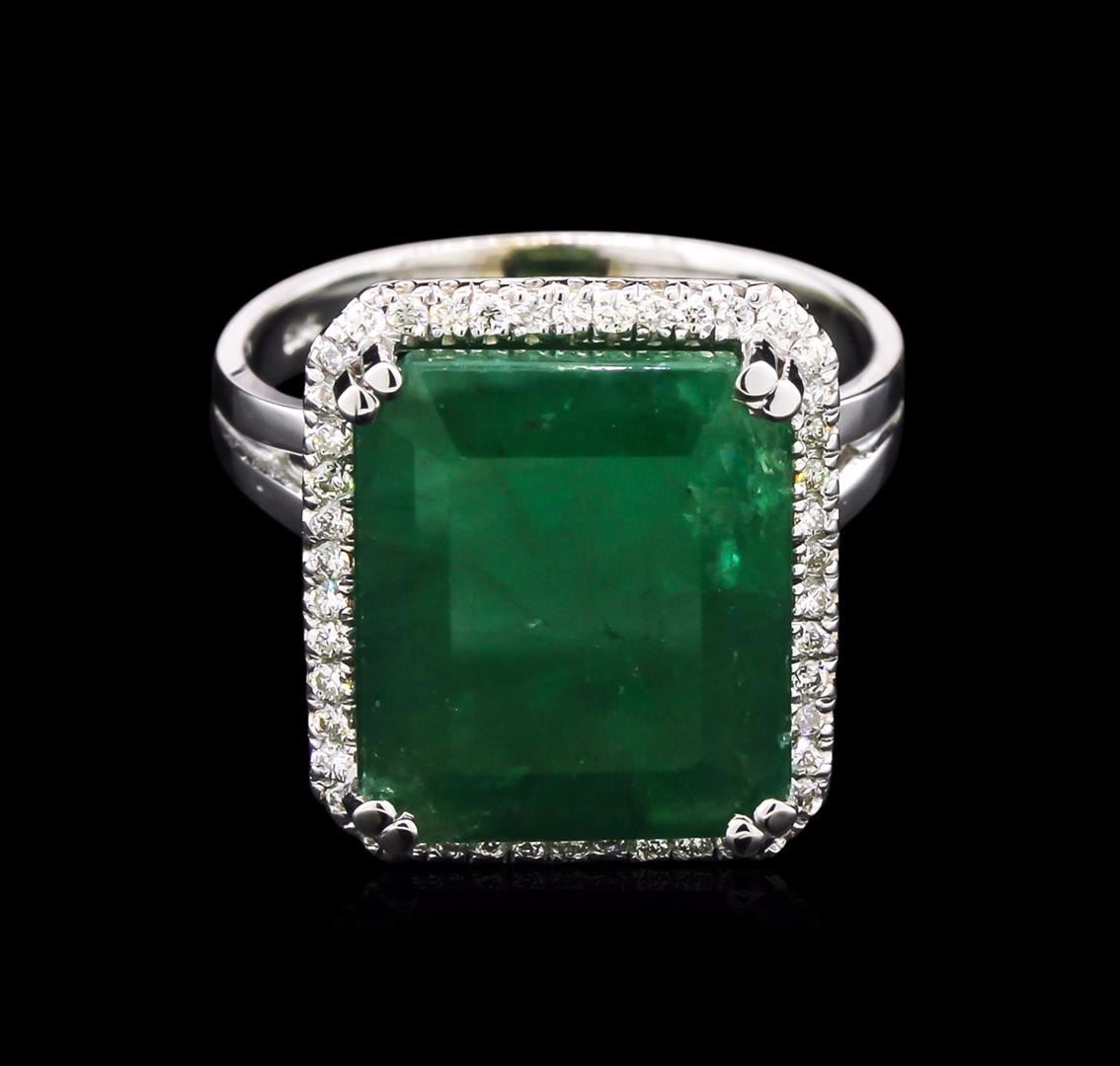 One 14KT white gold ring weighing 3.71 grams containing: 1 center emerald cut natural emerald with a total approximate weight of 7.82ct and round cut diamonds with a total approximate weight of 0.24ct. Diamonds: All VS-SI clarity; G-H color. Fine cutting/proportions. RBGS Appraised at $5,000.00.
